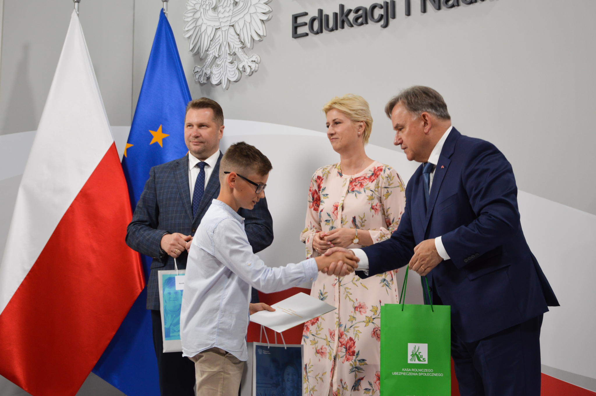 Minister Przemysław Czarnek oraz Prezes KRUS Aleksandra Hadzik wręczyli wyróżnienia laureatom III Ogólnopolskiego Konkursu dla Dzieci na Rymowankę o Bezpieczeństwie w Gospodarstwie Rolnym. Celem przedsięwzięcia jest popularyzowanie wiedzy o bezpieczeństwie oraz zapobieganie wypadkom w gospodarstwie rolnym.