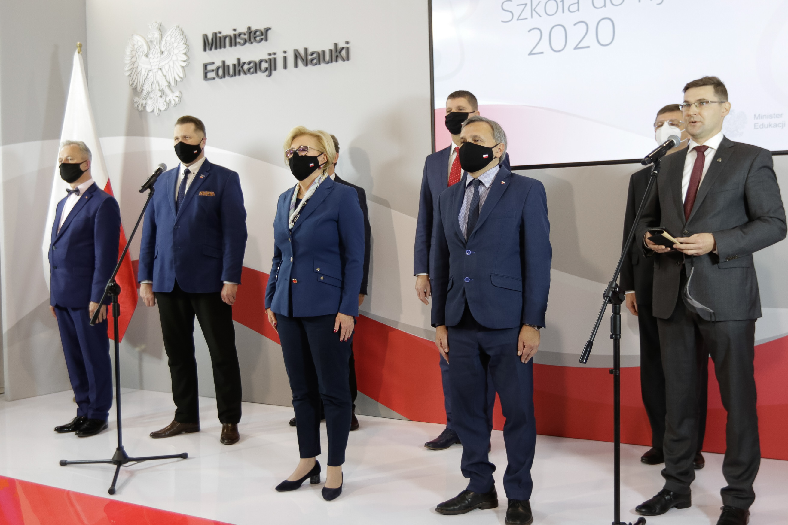We wspólnym śpiewaniu hymnu uczestniczyli także członkowie kierownictwa Ministerstwa Edukacji Narodowej oraz Ministerstwa Nauki i Szkolnictwa Wyższego – wiceministrowie Dariusz Piontkowski, Marzena Machałek, Maciej Kopeć, Włodzimierz Bernacki i Grzegorz Wrochna oraz dyrektor generalny MEN Sławomir Adamiec.