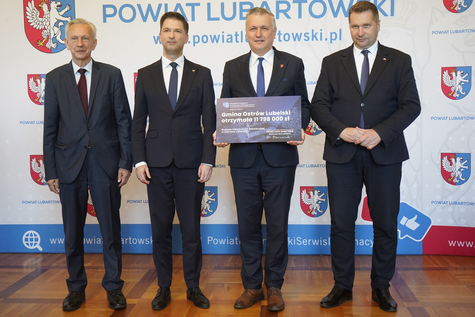 Minister Przemysław Czarnek spotkał się w Lubartowie z przedstawicielami władz samorządowych, aby przekazać symboliczne czeki na realizację inwestycji z Rządowego Programu Inwestycji Strategicznych. Są wśród nich środki na inwestycje oświatowe, które będą realizowane w: Lubartowie, Kocku, Ostrowie Lubelskim, Ostrówku oraz powiecie lubartowskim.