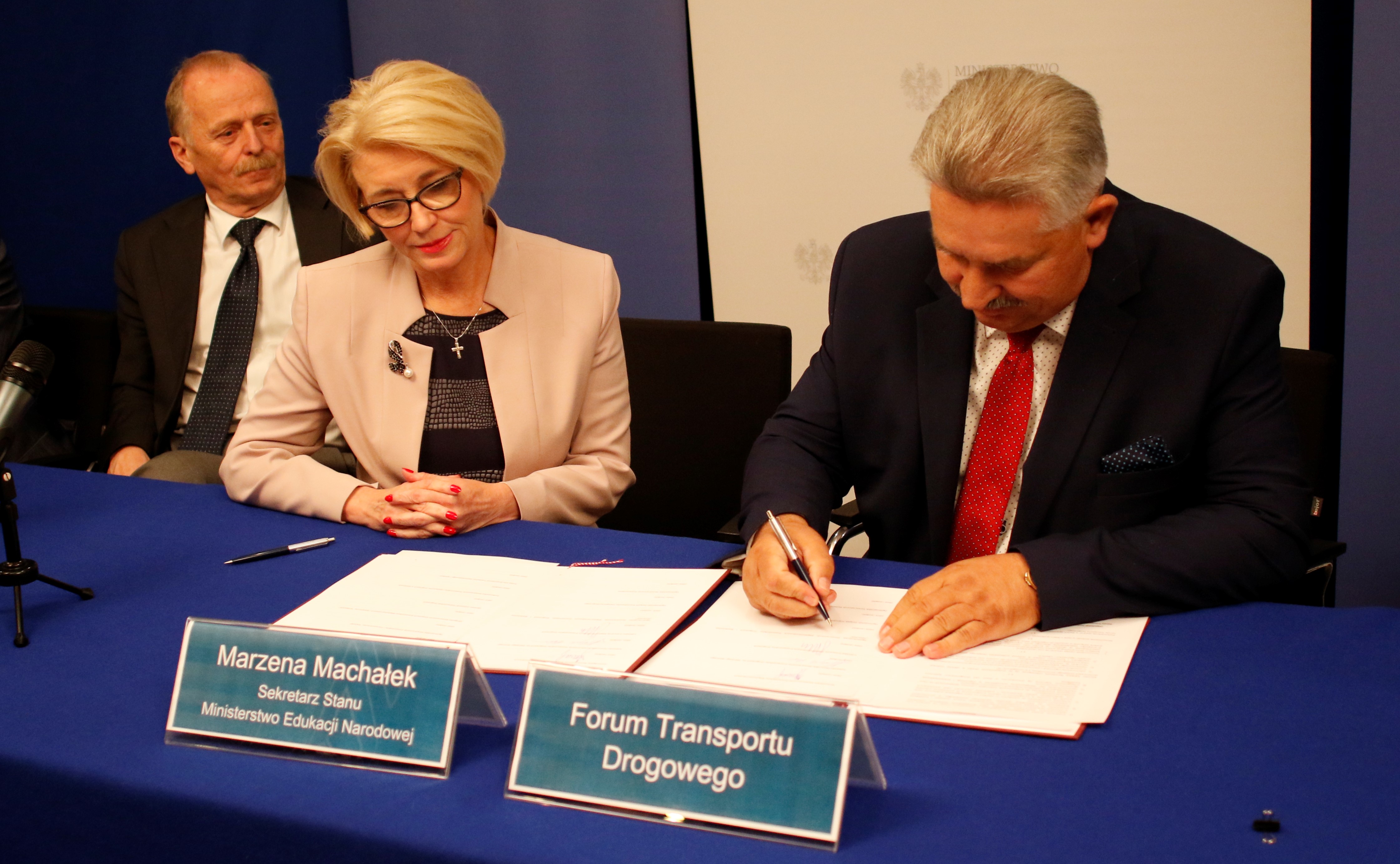 Porozumienie resortu edukacji z organizacjami przewoźników tworzącymi Forum Transportu Drogowego podpisano w siedzibie Zrzeszenia Międzynarodowych Przewoźników Drogowych w Warszawie.