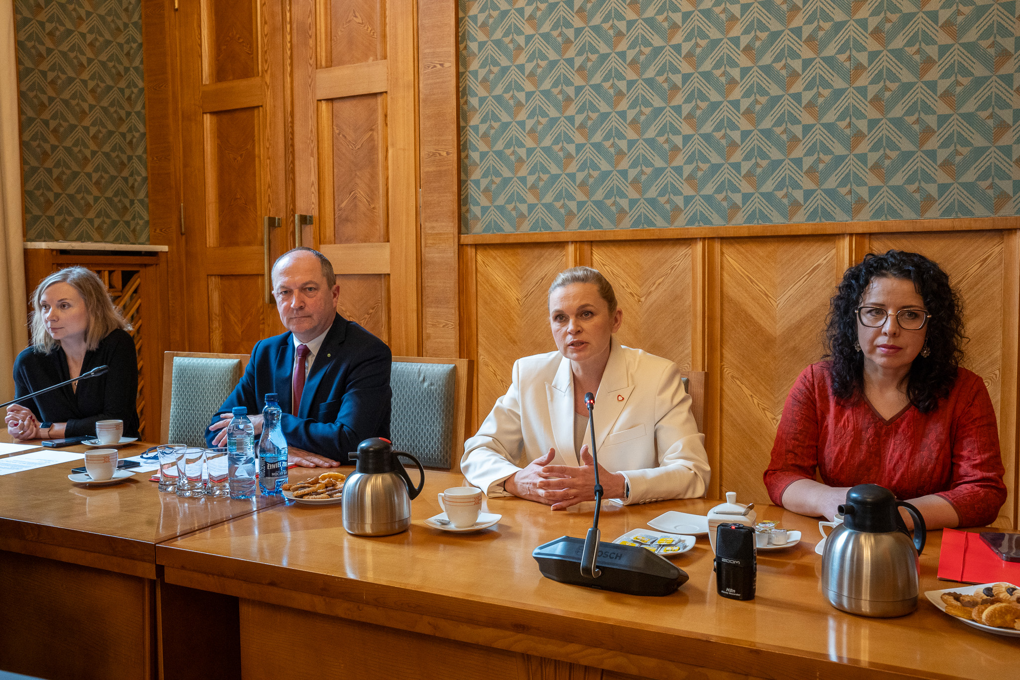 Po długiej nieobecności w gmachu Ministerstwa Edukacji Narodowej, dziś odbyło się spotkanie Zespołu do spraw Edukacji, Kultury i Sportu Komisji Wspólnej Rządu i Samorządu Terytorialnego. Dyskusję otworzyła minister Barbara Nowacka. Dalszą część spotkania poprowadzili: sekretarz stanu w MEN Henryk Kiepura oraz Anna Grygierek, burmistrz Strumienia.
