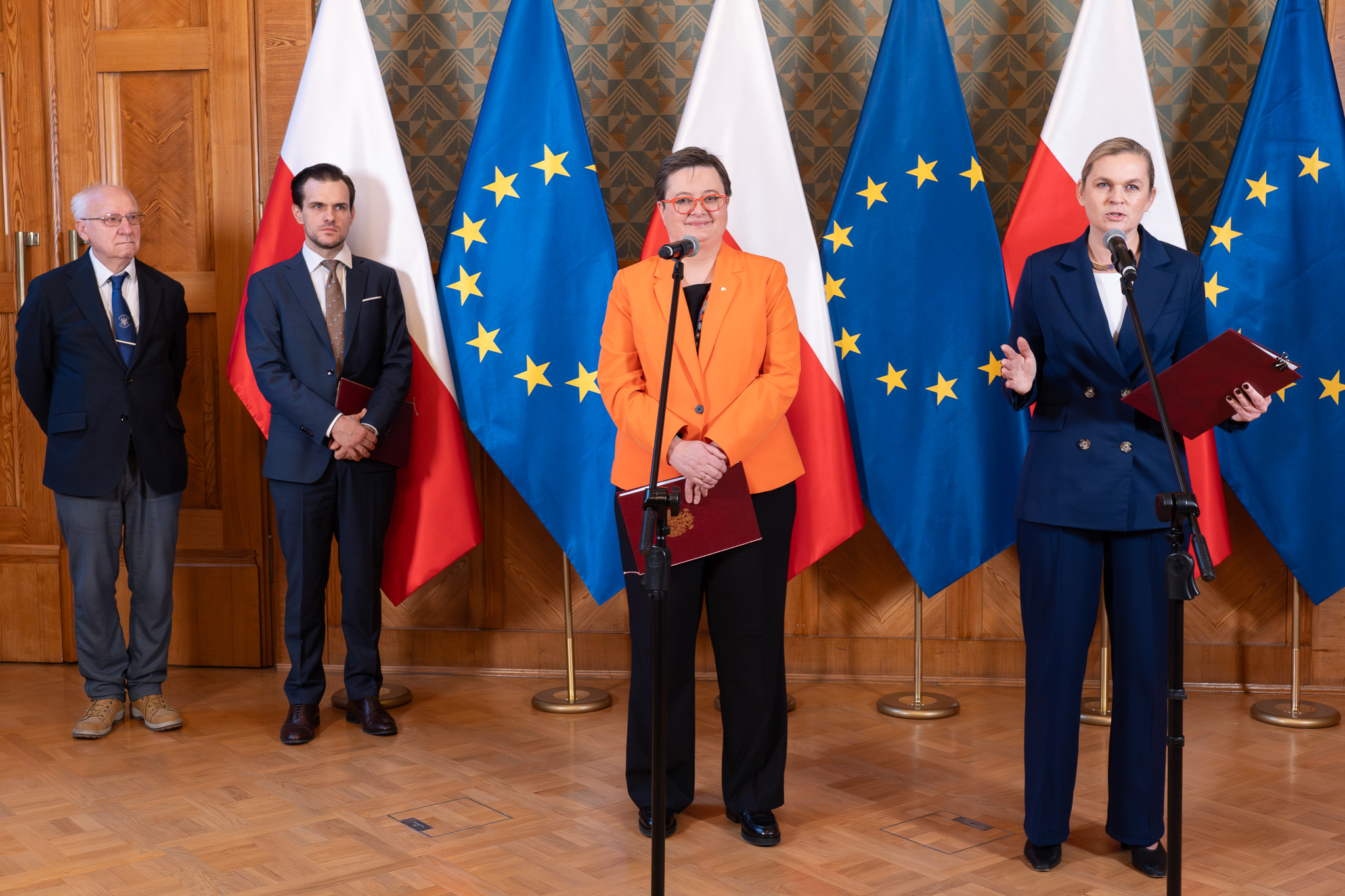 W konferencji prasowej uczestniczyli także sekretarz stanu w MEN dr Katarzyna Lubnauer oraz przedstawiciel Konferencji Rektorów Szkół Polskich w radzie, prof. Zbigniew Marciniak.