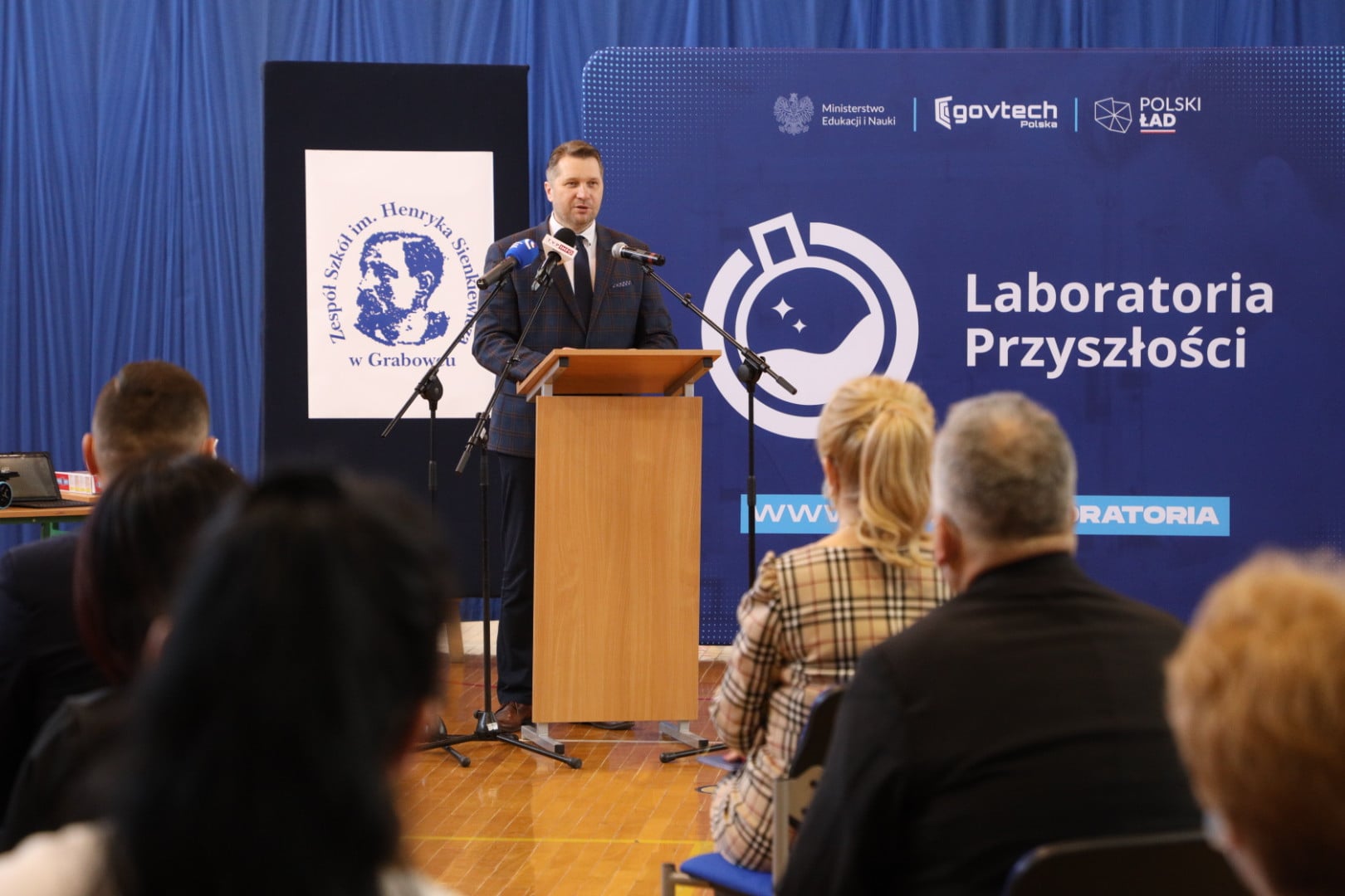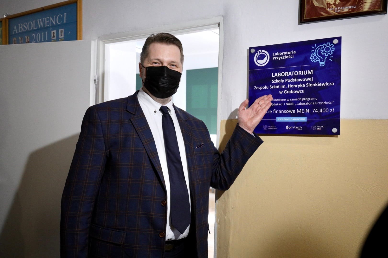 Dziś, w piątek 18 lutego br. Minister Edukacji i Nauki Przemysław Czarnek odwiedził uczniów i nauczycieli z Zespołu Szkół im. Henryka Sienkiewicza w Grabowcu. Uczestniczył w prezentacji nowo otwartej pracowni wyposażonej w sprzęt kupiony ze środków z programu Laboratoria Przyszłości.