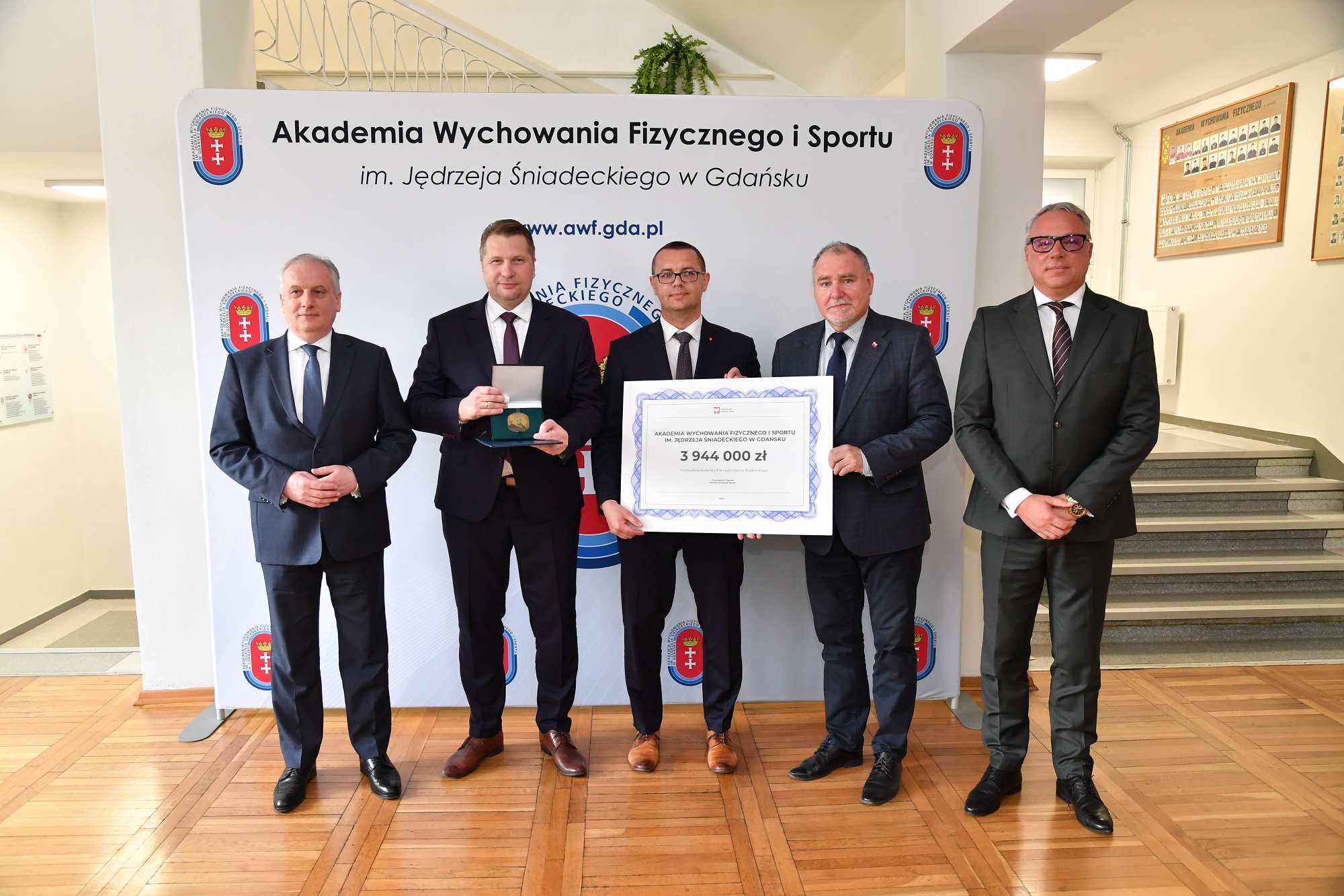 Minister Przemysław Czarnek odwiedził Akademię Wychowania Fizycznego i Sportu im. Jędrzeja Śniadeckiego w Gdańsku. Podczas wizyty przekazał władzom uczelni symboliczny czek na rozbudowę domu studenckiego.