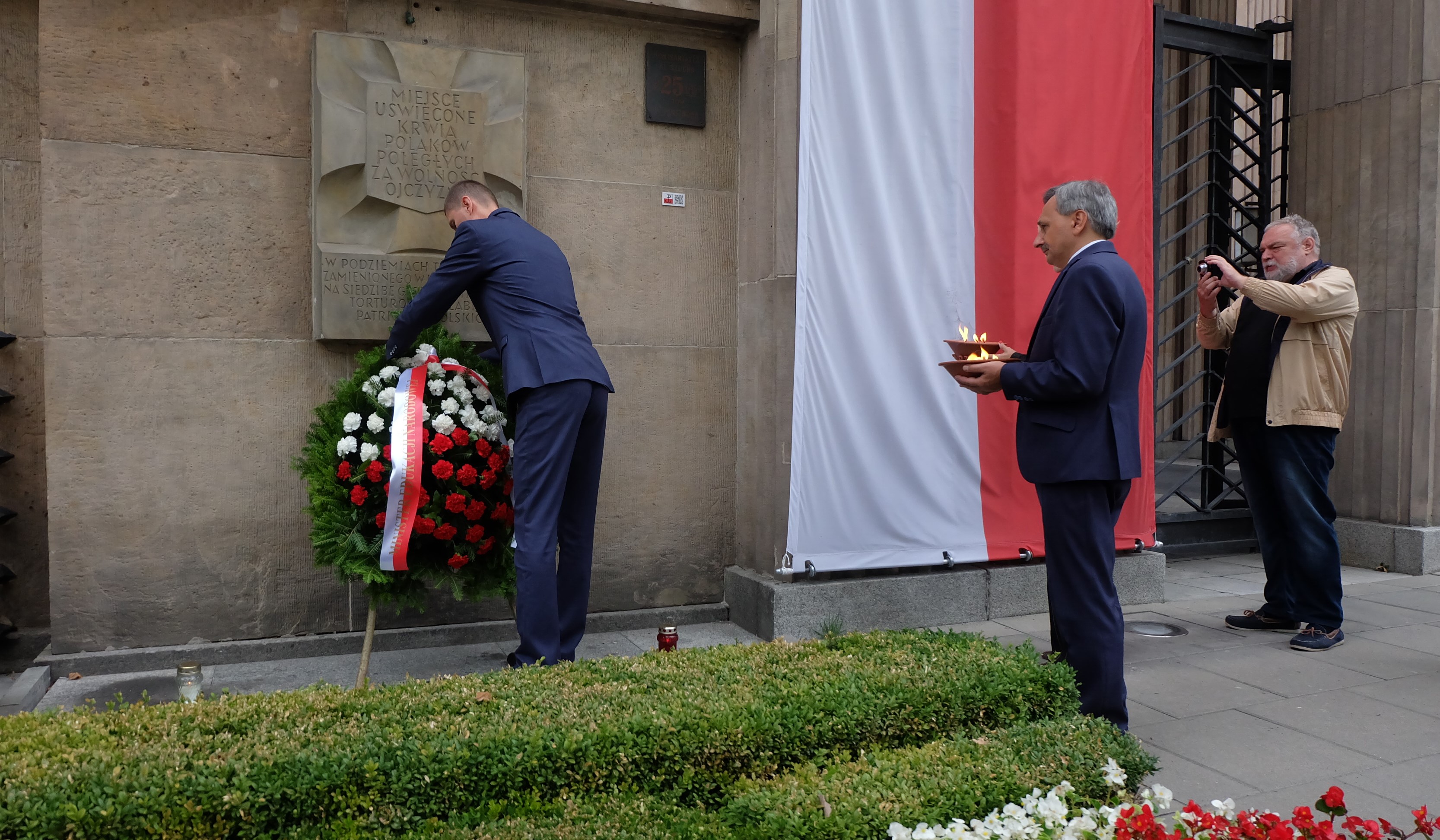 Członkowie kierownictwa MEN wraz z przedstawicielami Muzeum Niepodległości oraz Mauzoleum Walk i Męczeństwa, w 75. rocznicę wybuchu Powstania Warszawskiego rano złożyli kwiaty pod tablicą pamięci znajdującą się na ścianie budynku Ministerstwa Edukacji Narodowej. W czasie niemieckiej okupacji w gmachu MEN znajdował się Urząd Komendanta Policji Bezpieczeństwa i Służby Bezpieczeństwa Dystryktu Warszawskiego. W czasie Powstania Warszawskiego obecny budynek resortu edukacji pełnił rolę punktu rozdzielczego dla ludności z południowych, zajętych przez Niemców, dzielnic Warszawy. Z kolei po południu przedstawiciele MEN uczestniczyli w uroczystościach patriotycznych przy Pomniku Polskiego Państwa Podziemnego i AK.