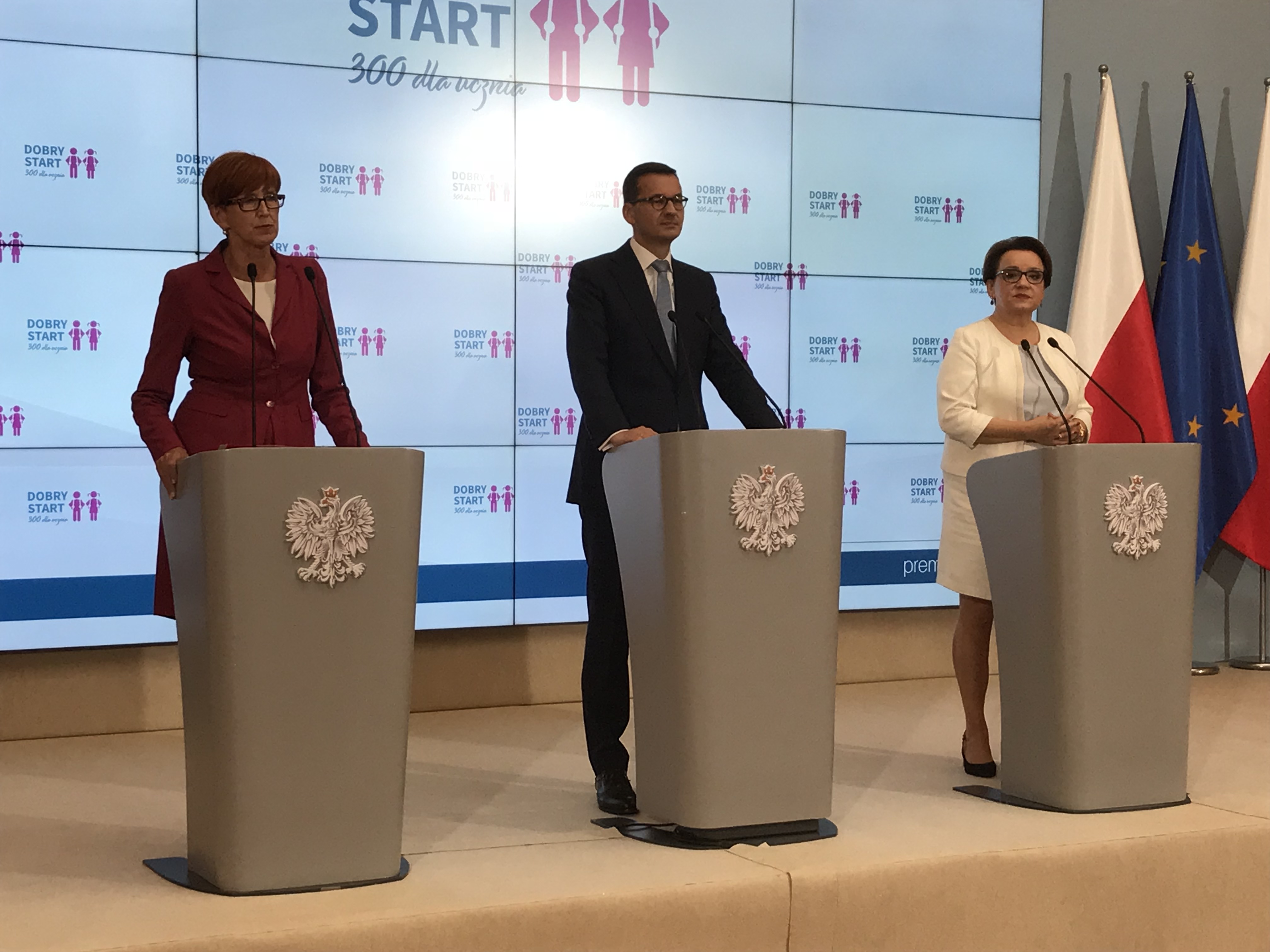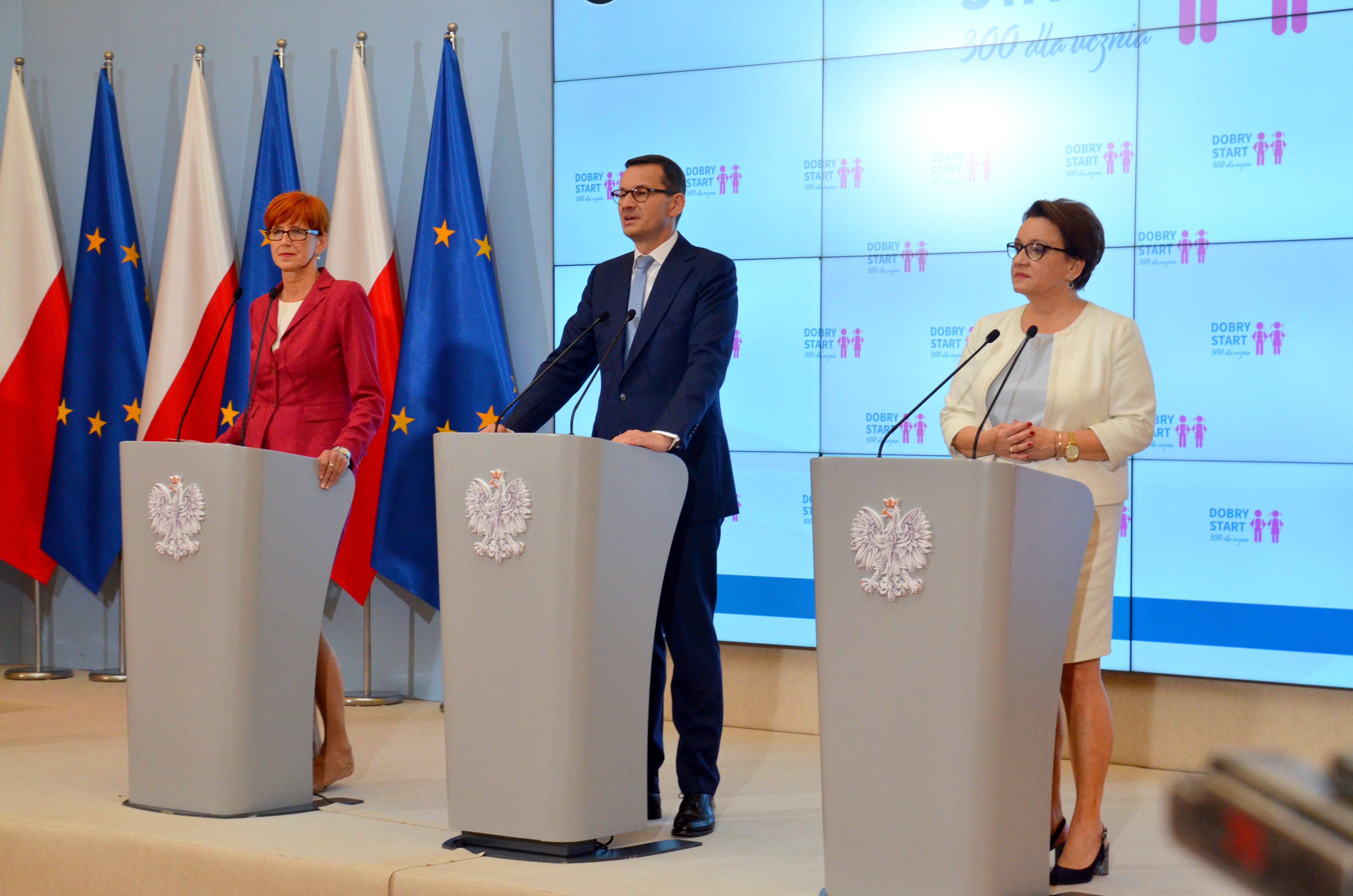 Dziś, 30 sierpnia br. w Kancelarii Prezesa Rady Ministrów odbyła się konferencja podsumowująca dwa miesiące funkcjonowania programu „Dobry Start”. W konferencji uczestniczyli: Prezes Rady Ministrów Mateusz Morawiecki, Minister Edukacji Narodowej Anna Zalewska oraz Minister Rodziny, Pracy i Polityki Społecznej Elżbieta Rafalska.