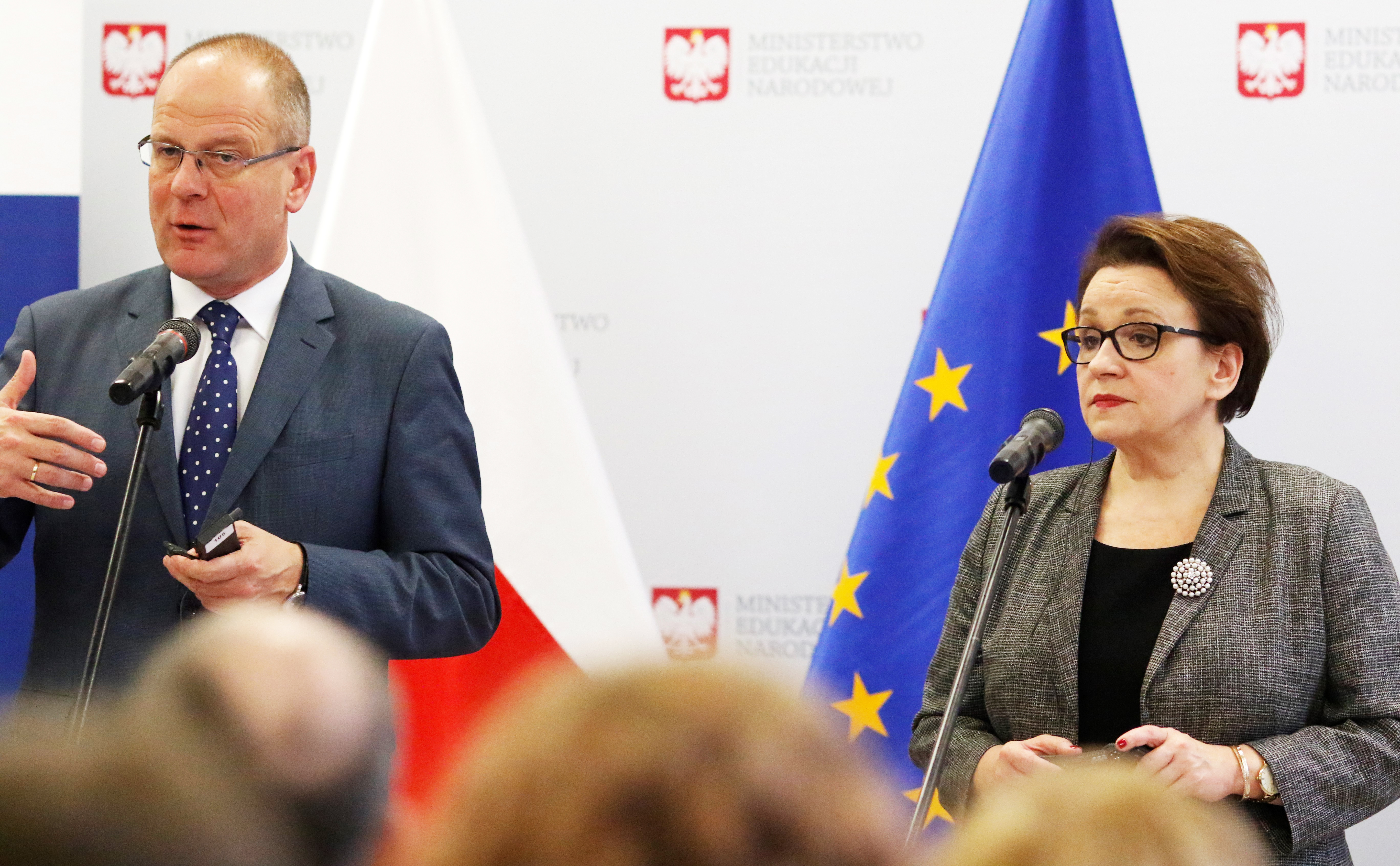Minister Edukacji Narodowej Anna Zalewska w warszawskim IX LO im. Klementyny Hoffmanowej wspólnie z Tiborem Navracsicsem, Komisarzem UE do spraw Edukacji, Kultury, Młodzieży i Sportu wzięła udział w prezentacji narzędzia SELFIE, które ma pomóc szkołom we włączaniu technologii cyfrowych w proces nauczania, uczenia się i oceny uczniów.