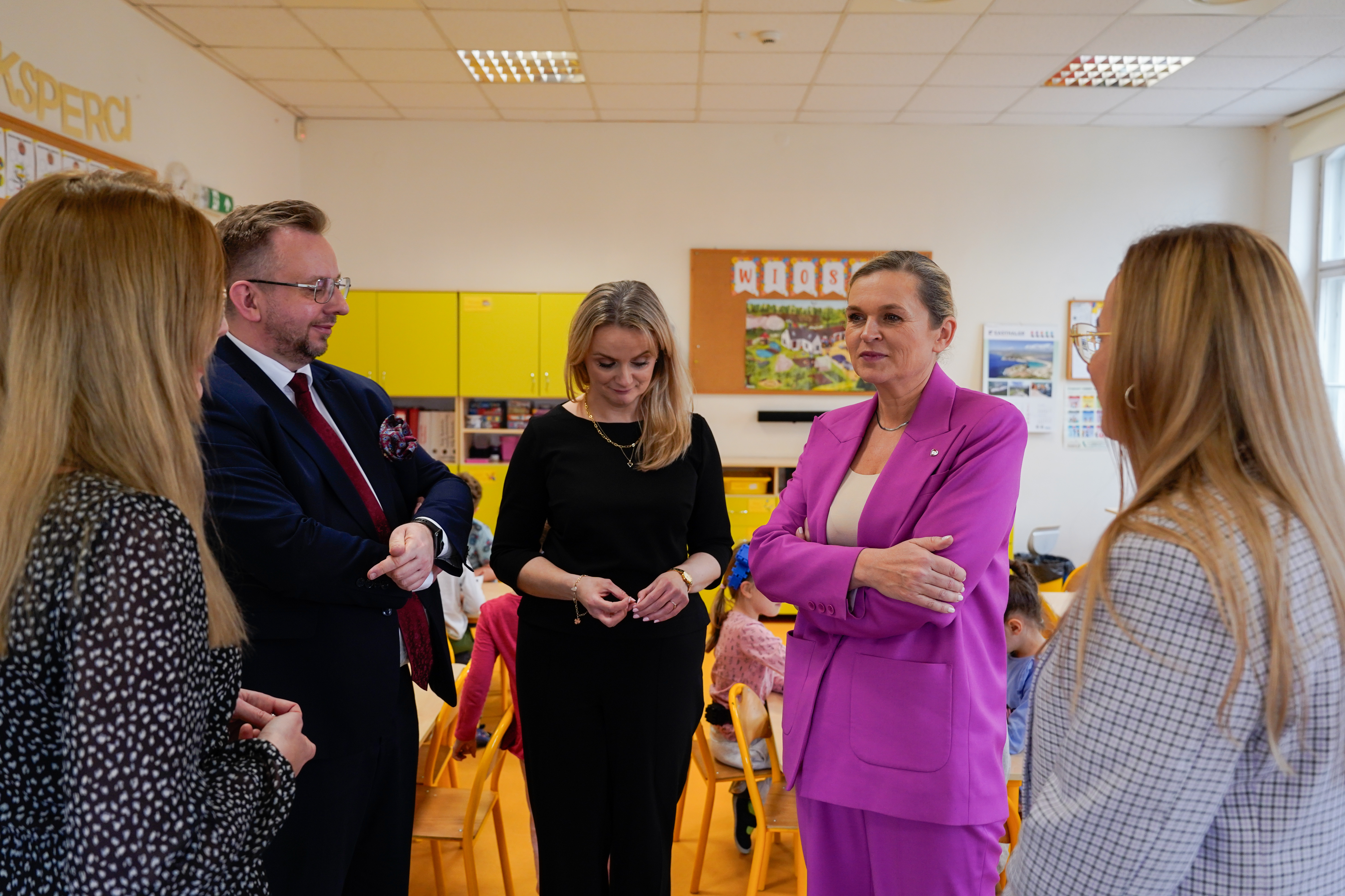 Minister Nowacka odwiedziła także Park Technologii Kosmicznych – miejsce, które łączy innowacje technologiczne z edukacją, a na zakończenie wzięła udział w lekcji pokazowej w Przedszkolu nr 18 „Czekoladowe Przedszkole”, które realizuje pracę w oparciu o założenia pedagogiki planu daltońskiego.