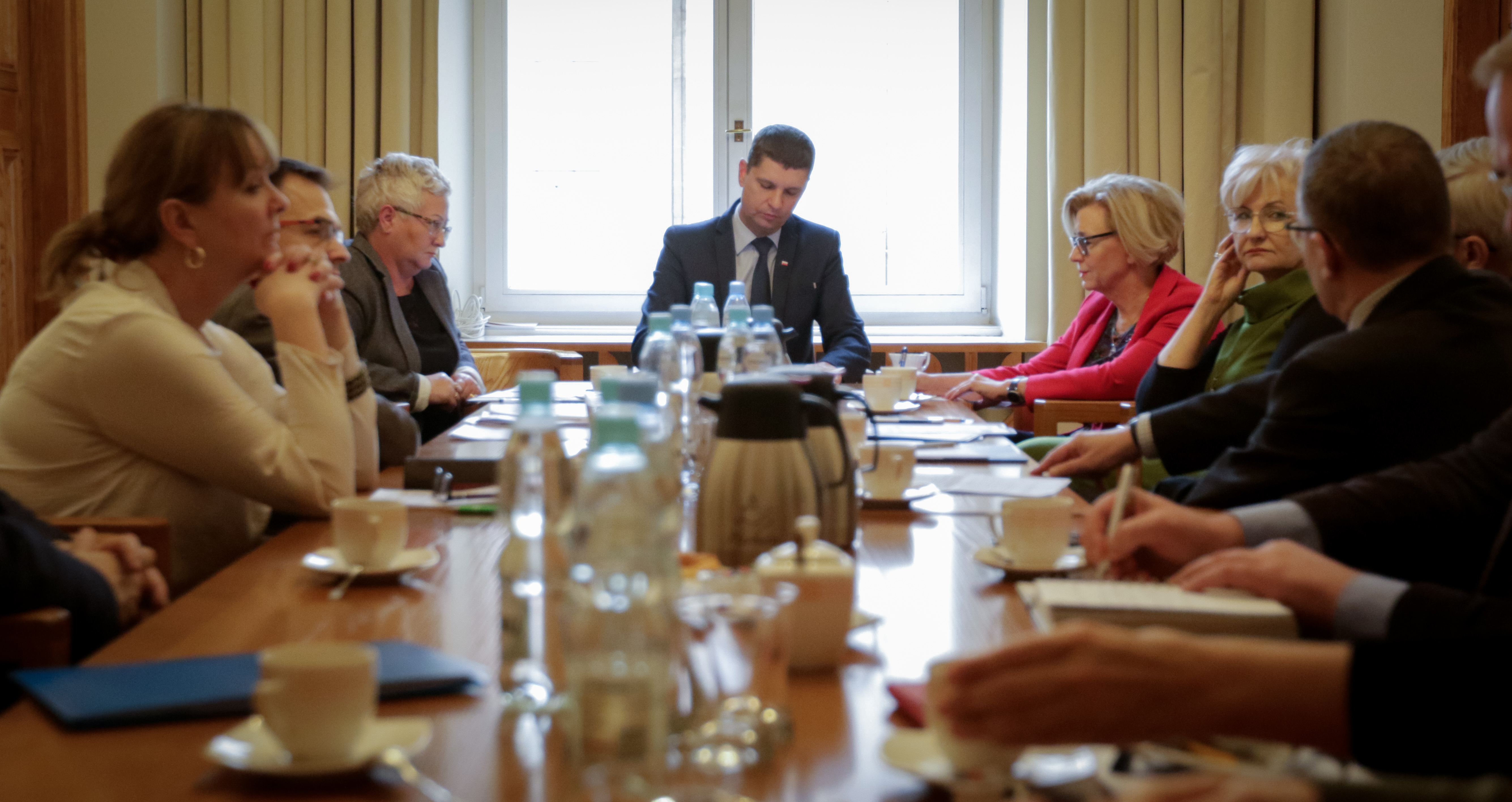 W środę, 18 grudnia 2019 r. w gmachu MEN odbyło się spotkanie przedstawicieli Zespołu do spraw opracowania modelu kształcenia uczniów ze specjalnymi potrzebami edukacyjnymi z Ministrem Edukacji Narodowej Dariuszem Piontkowskim oraz wiceministrami Marzeną Machałek i Iwoną Michałek.