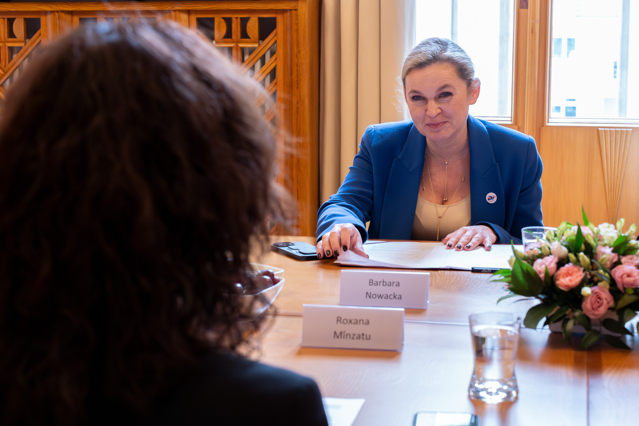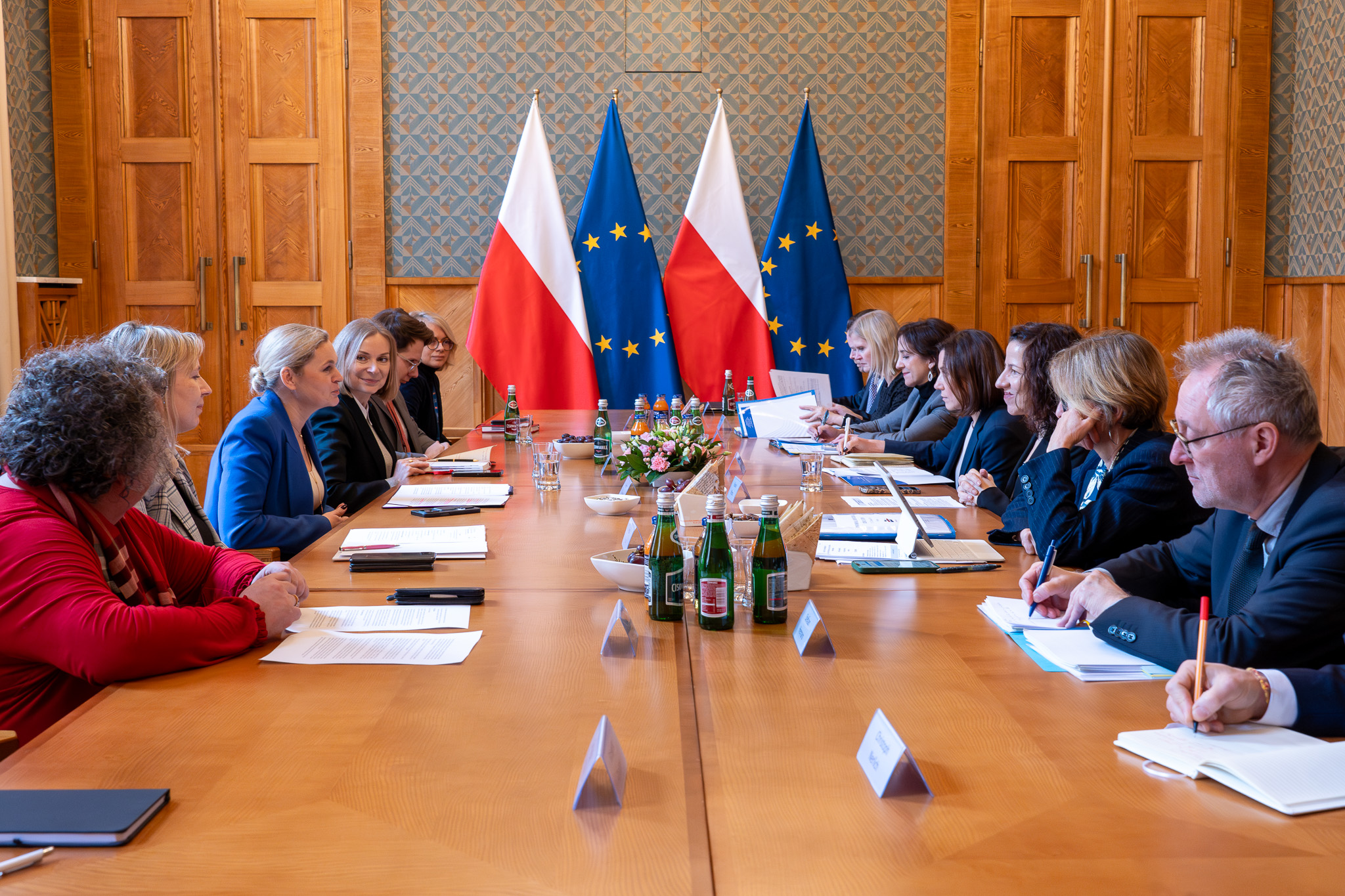 Spotkanie Minister Edukacji Barbary Nowackiej z Roxaną Mînzatu, wiceprzewodniczącą wykonawczą Komisji Europejskiej ds. praw socjalnych i umiejętności, wysokiej jakości miejsc pracy i gotowości