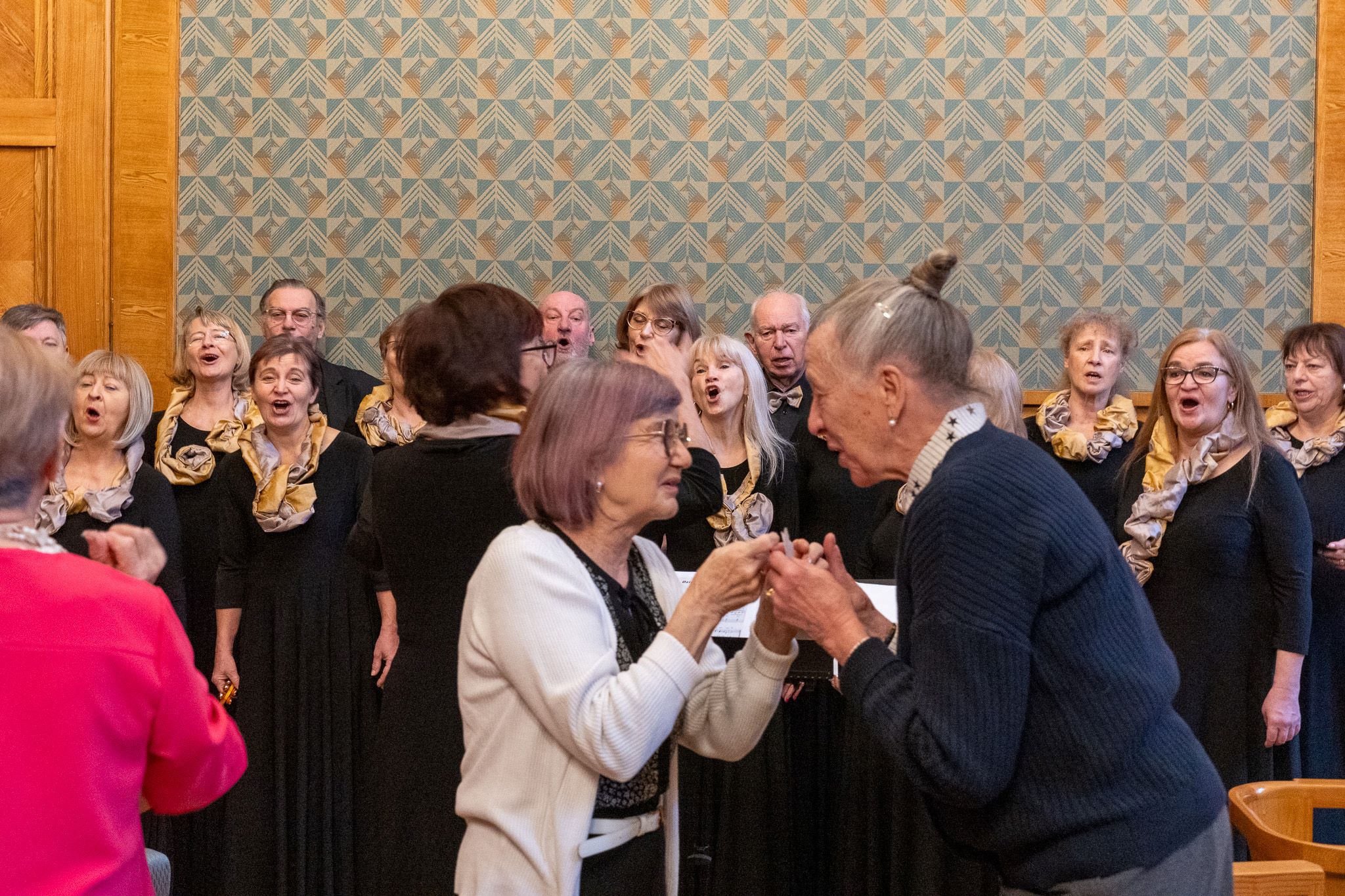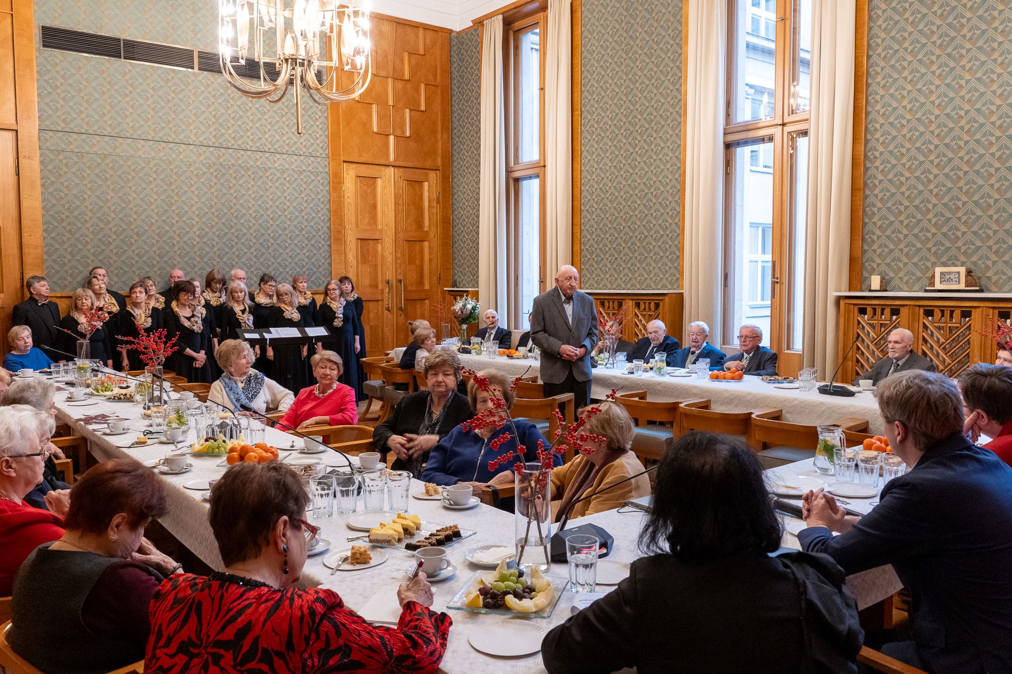 Uroczystość przebiegała w podniosłej, chwytającej za serce atmosferze, na którą złożyły się przepiękne polskie kolędy prezentowane przez Chór Wychowanków Harcmistrza Władysława Skoraczewskiego, pod dyrygenturą Naszej Koleżanki – Krystyny Stańczak-Pałygi. Wszyscy obecni składali sobie wzajemnie życzenia i dzielili się opłatkiem.