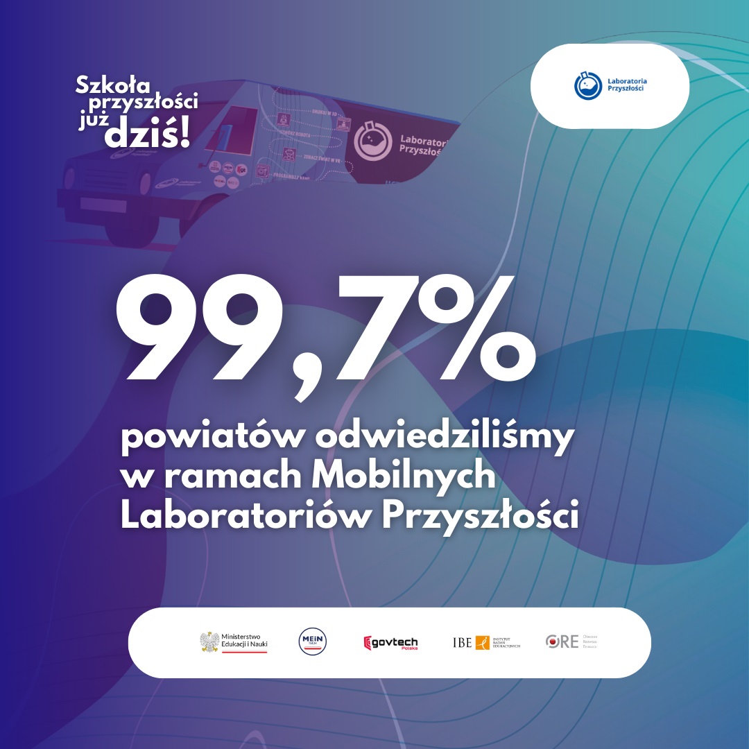 Mobilne Laboratoria Przyszłości od września 2022 r. w sposób praktyczny wspierały uczniów i nauczycieli w wykorzystywaniu sprzętu zakupionego w ramach programu Laboratoria Przyszłości, a zainteresowanie projektem przerosło oczekiwania organizatorów. Dzięki Mobilnym Laboratoriom Przyszłości uczniowie z najmniejszych nawet miejscowości mieli szansę na uczestniczenia w wyjątkowych zajęciach, rozwijania kreatywności, pasji, zainteresowań i talentów, które mogą przełożyć się na lepszy start w dorosłość. Podczas warsztatów edukatorzy pomagali odkrywać zainteresowania umiejętnościami, które pozwolą uczniom wykorzystać technologię w sposób zgodny z predyspozycjami. Dla jednych będą to pomysły na automatyzację, dla innych zbudowanie robota, dla innych jeszcze nauka podstaw programowania. Udział w warsztatach stanowił inspirację do eksperymentowania z technologią nie tylko dla uczniów. Była to też okazja do rozwoju dla nauczycieli i wsparcie rozwoju bazy dydaktycznej.