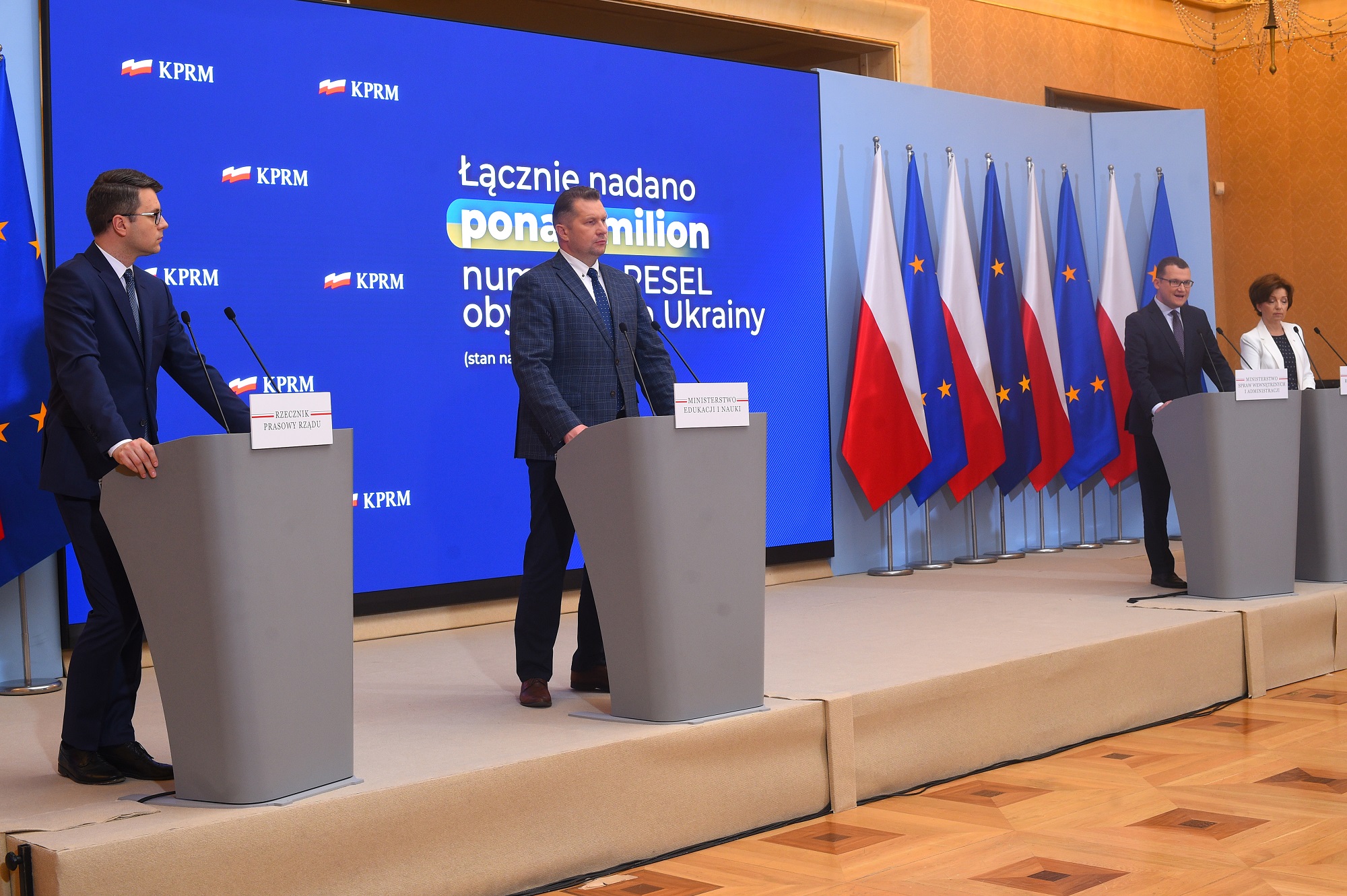 Systemowe rozwiązania w zakresie edukacji, opieki nad dziećmi oraz dotyczące prawa pracy to najważniejsze założenia zawarte w projekcie nowelizacji ustawy o pomocy obywatelom Ukrainy. Rozwiązania te przybliżyli Minister Edukacji i Nauki Przemysław Czarnek, Minister Rodziny i Polityki Społecznej Marlena Maląg, Sekretarz Stanu w MSWiA Paweł Szefernaker oraz Sekretarz Stanu w KPRM Piotr Müller podczas wspólnej konferencji prasowej.