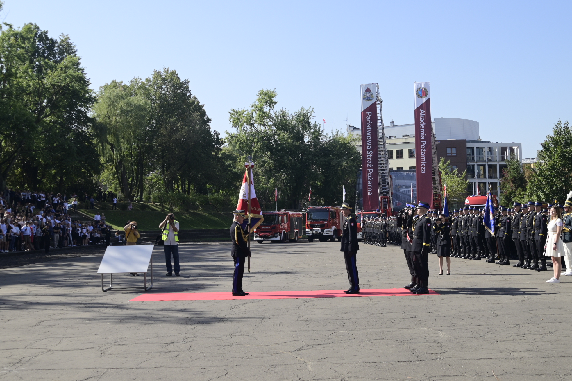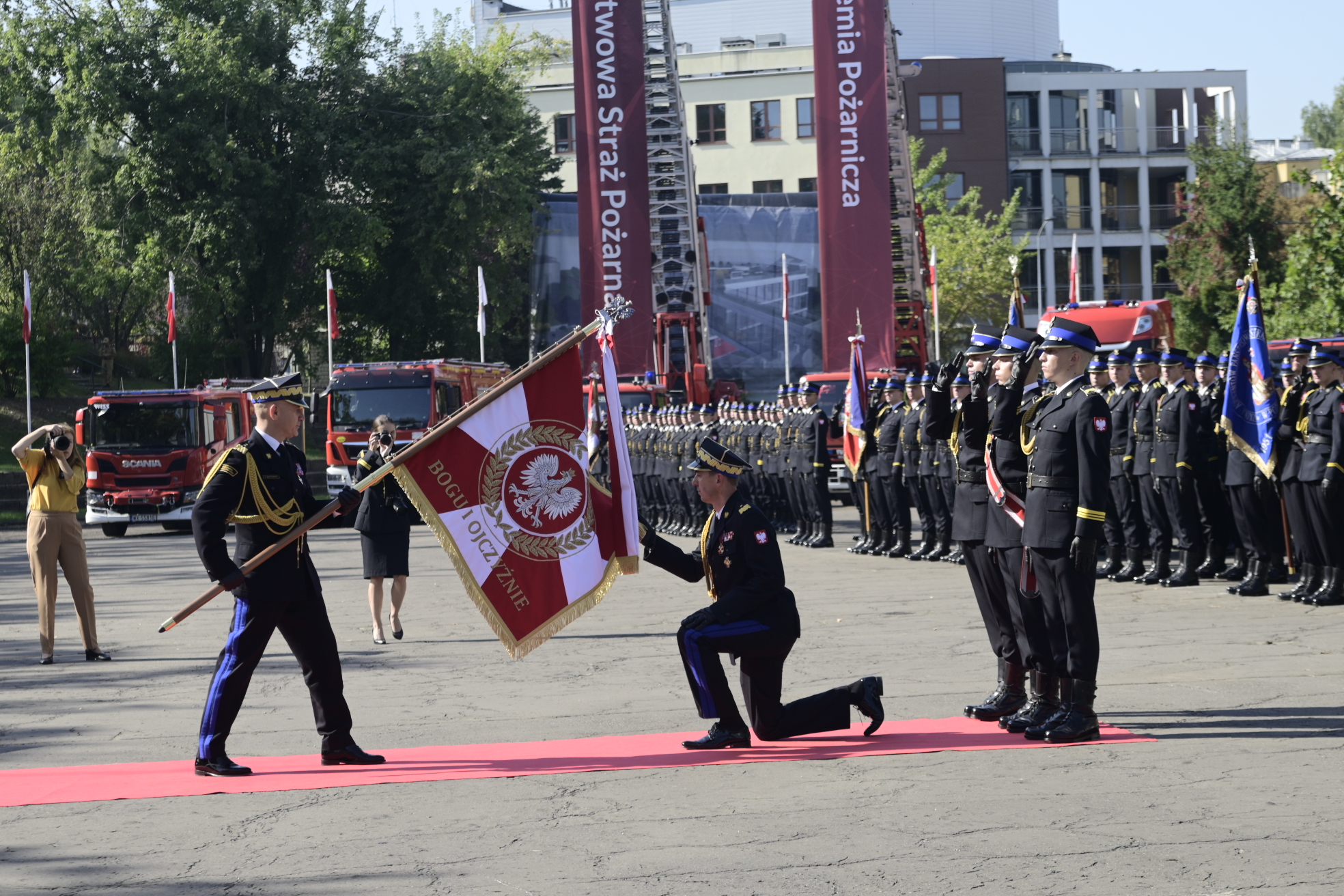 1 sierpnia dotychczasowa Szkoła Główna Służby Pożarniczej zmieniła nazwę na Akademia Pożarnicza. Stąd też ważnym elementem pierwszej inauguracji roku akademickiego było wręczenie nowego sztandaru. Wiceprzewodniczącym komitetu honorowego nadania sztandaru został Minister Edukacji i Nauki, który w swoim wystąpieniu podkreślił, że to szczególny honor i wyróżnienie.