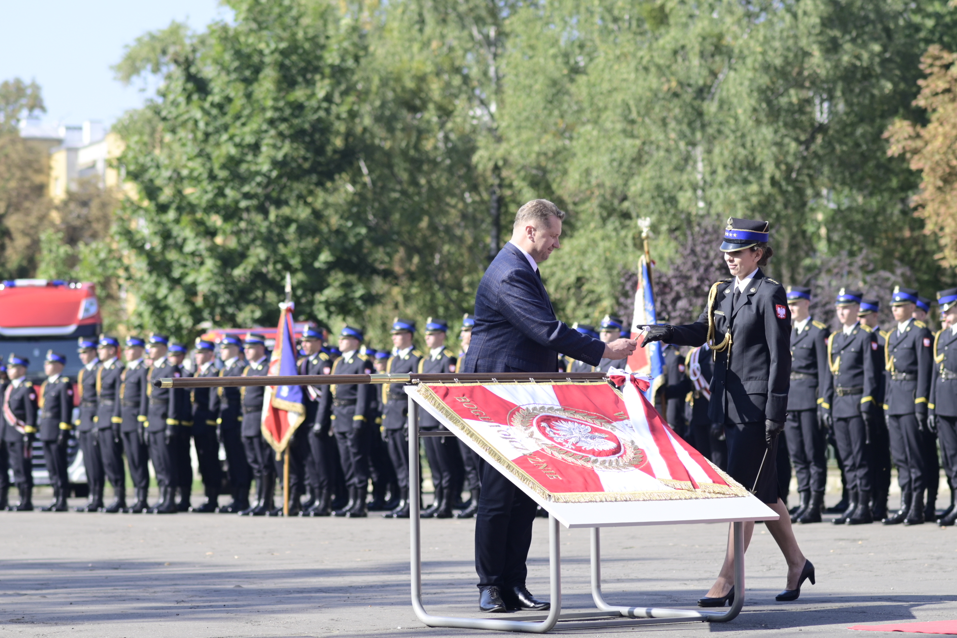 – To szczególny zaszczyt, bo my, Polacy, wychowani w kulturze polskiej, dokładnie wiemy co, to znaczy służba, dokładnie wiemy, ile zawdzięczamy wszyscy Waszemu poświęceniu, Waszej misji, Waszemu oddaniu sprawie bezpieczeństwa państwa polskiego i Polaków. My, Polacy, po prostu jesteśmy murem za polskim mundurem. A mundur to szczególny – mundur funkcjonariusza Państwowej Straży Pożarnej – mówił minister Przemysław Czarnek.