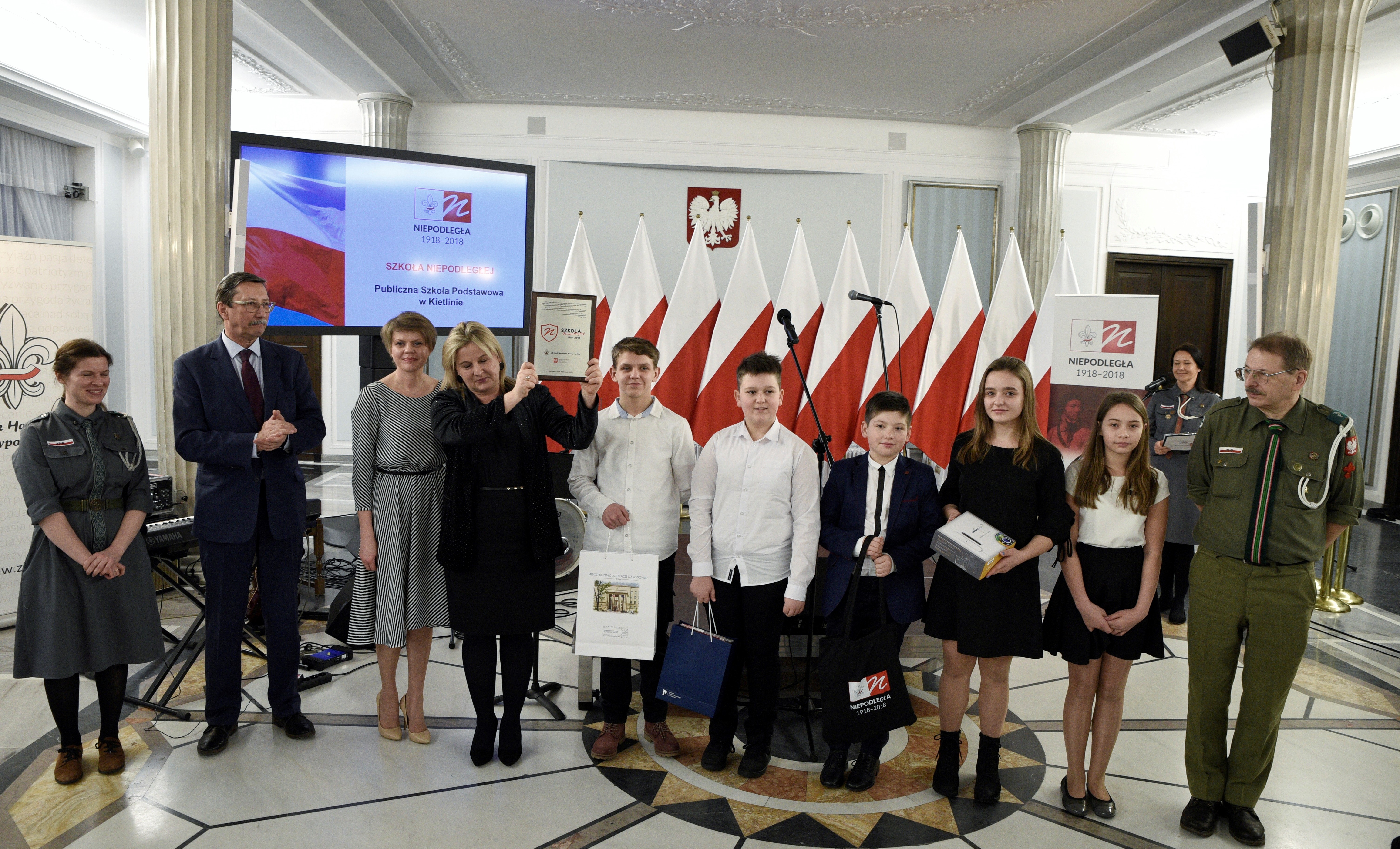 W piątek, 8 lutego br. w Sejmie RP odbyło się podsumowanie konkursu „Szkoła Niepodległej”, organizowanego przez Związek Harcerstwa Rzeczypospolitej. Zaszczytny tytuł „Szkoła Niepodległej” otrzymało 215 szkół z całej Polski. Minister Edukacji Narodowej objęła przedsięwzięcie honorowym patronatem.