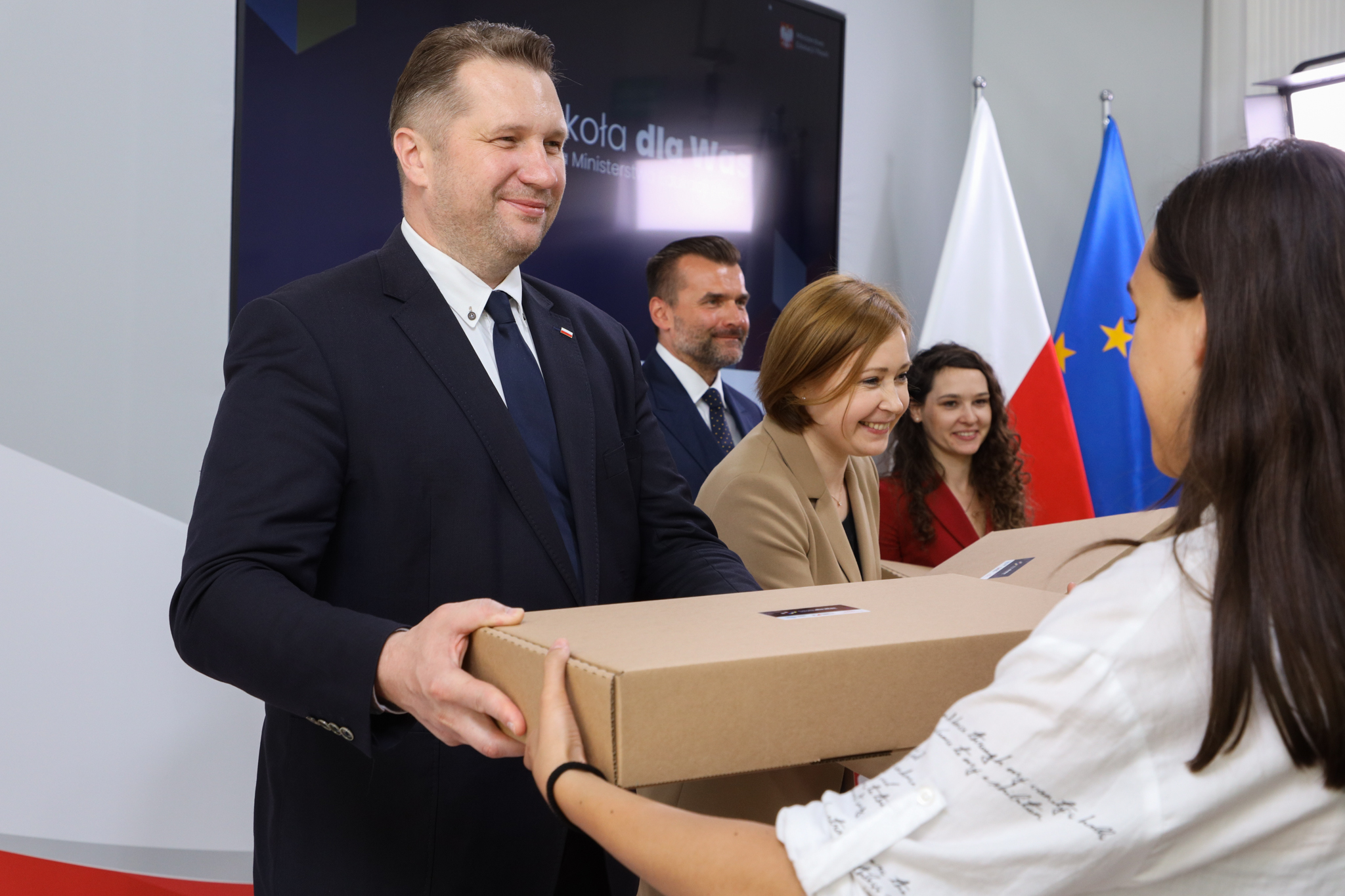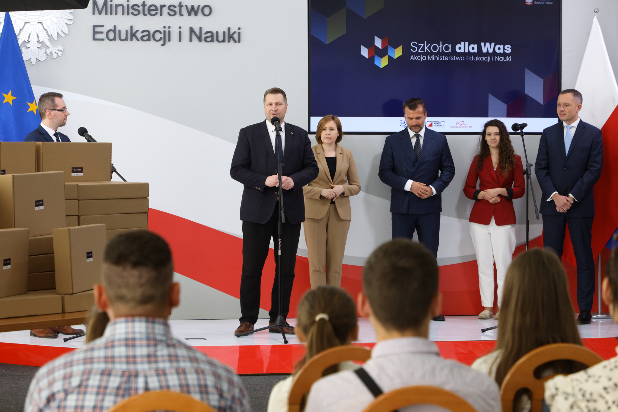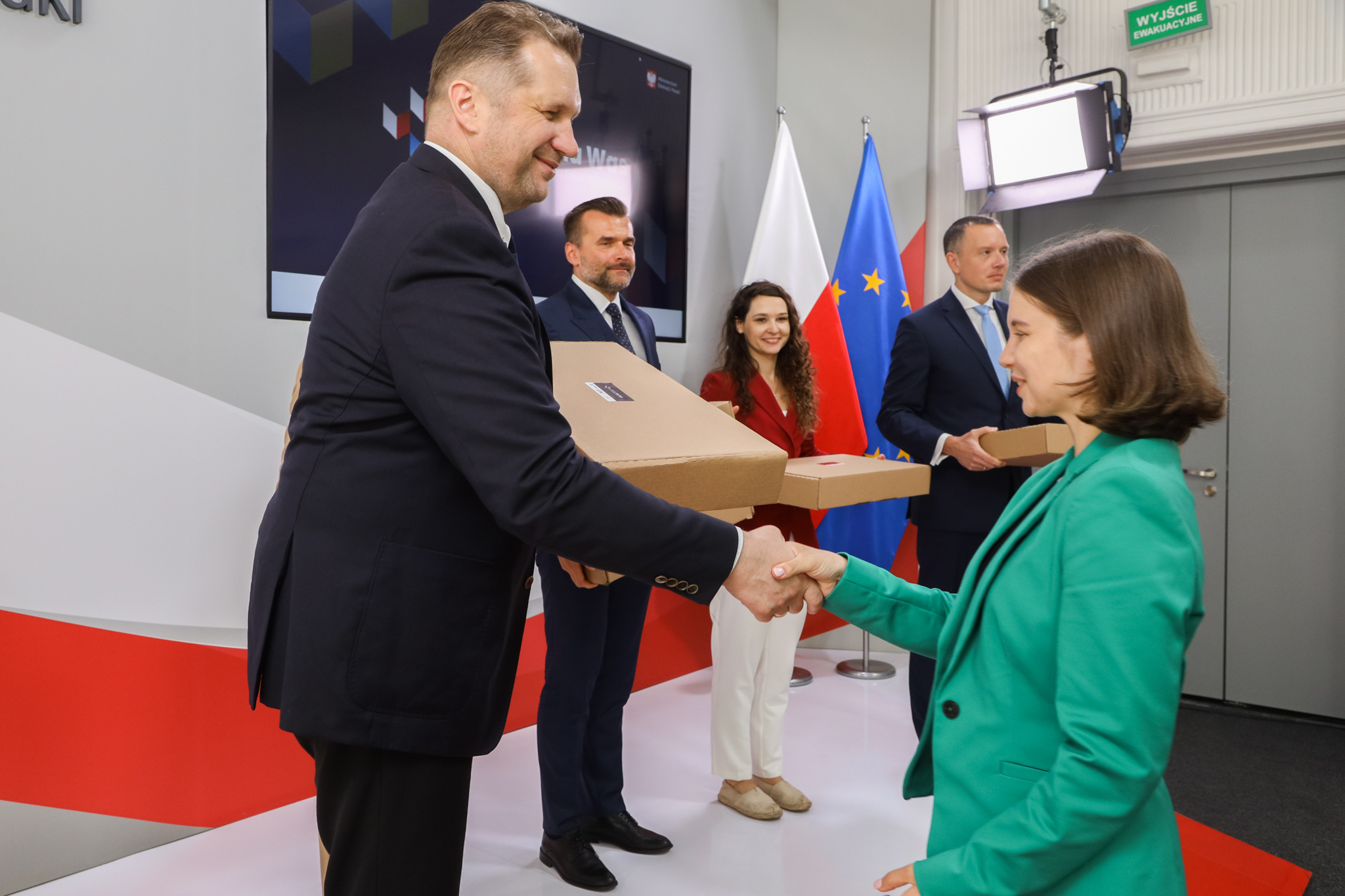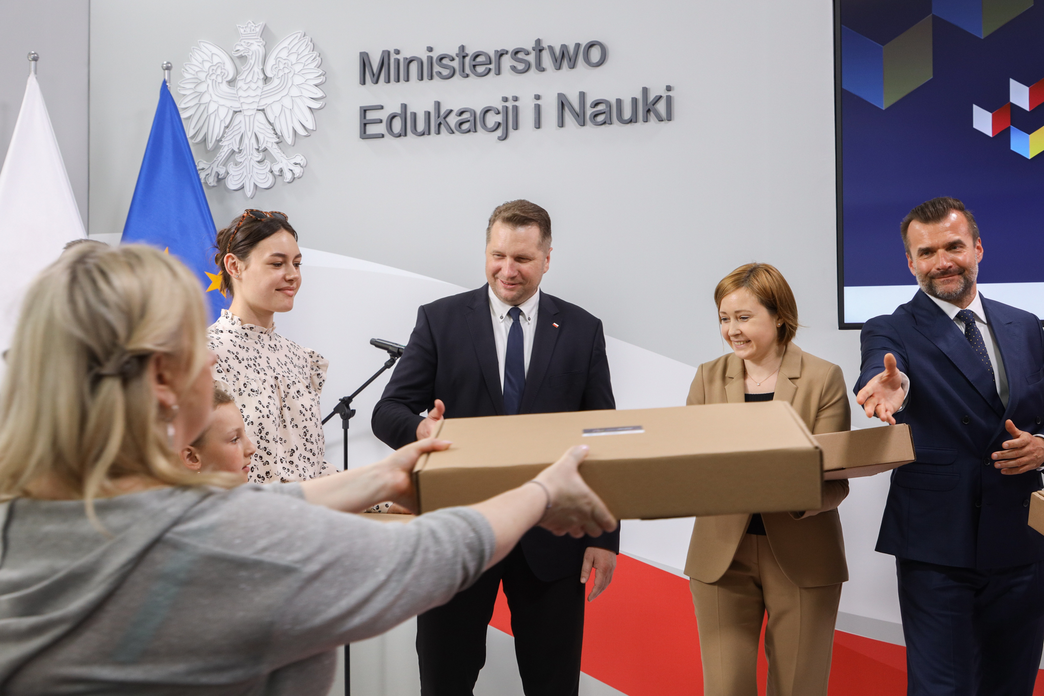 Dzieci z Ukrainy, które uczą się zdalnie, otrzymują sprzęt komputerowy w ramach akcji „Szkoła dla Was”. Inicjatywa to wspólne przedsięwzięcie Ministerstwa Edukacji i Nauki, GovTech, Związku Cyfrowa Polska oraz Poczty Polskiej i Fundacji Wolność i Demokracja. Dziś w siedzibie MEiN grupa ukraińskich dzieci wraz z opiekunami odebrała laptopy, które posłużą im do nauki zdalnej.