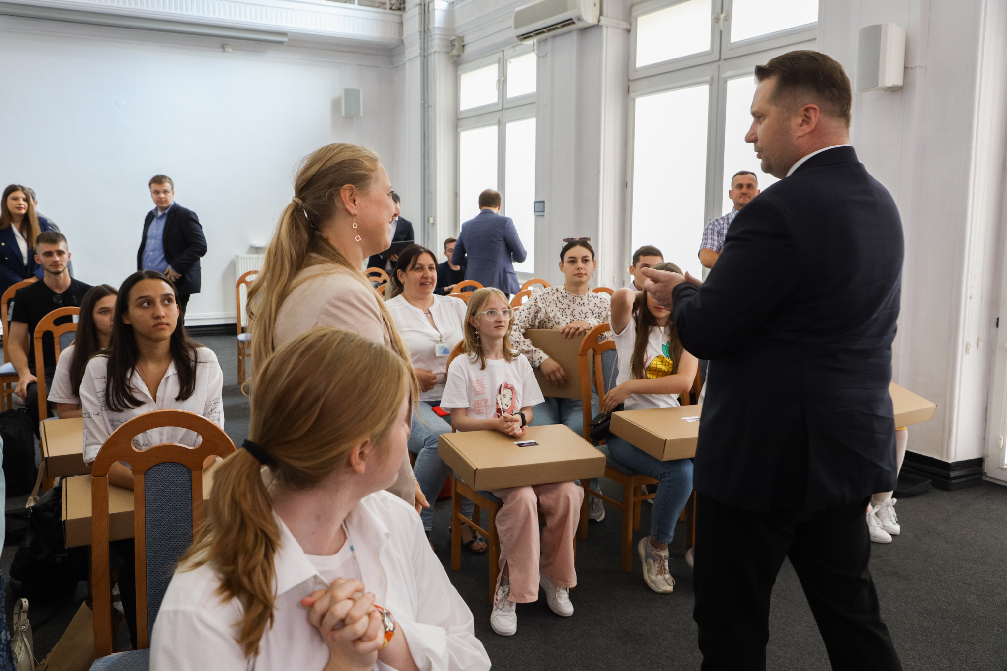 – Bardzo się cieszę, że dzieci i młodzieży z Ukrainy otrzymują tego rodzaju sprzęt, który jest potrzebny do tego, by byli w kontakcie ze swoimi szkołami ukraińskimi – mówił minister Przemysław Czarnek. Podkreślił, że w obecnej sytuacji sprzęt komputerowy to niezbędne narzędzie do pogłębiania wiedzy i rozwoju intelektualnego ukraińskich uczniów.