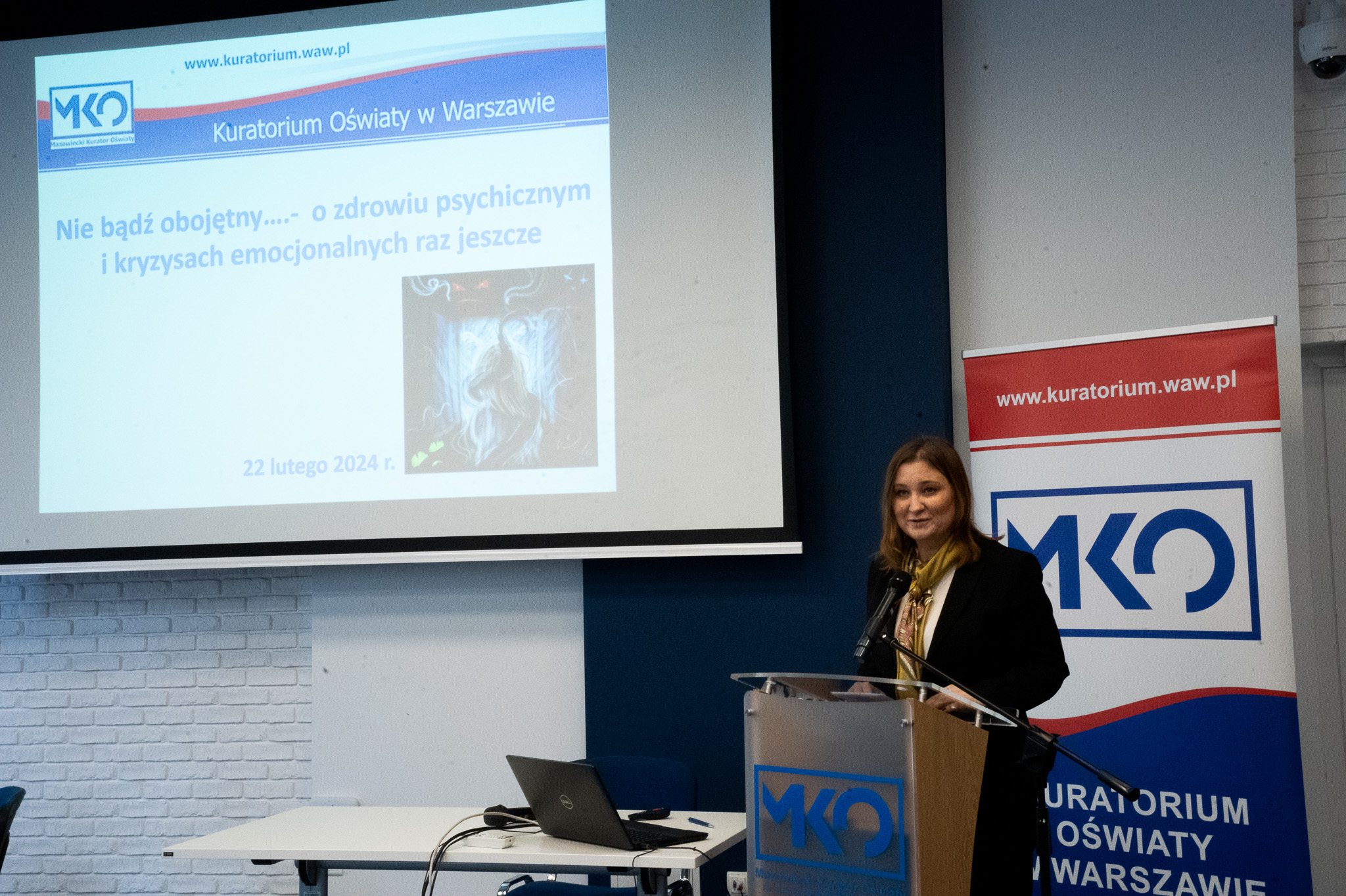 Wiceminister Paulina Piechna-Więckiewicz wzięła udział w konferencji „Nie bądź obojętny… - o zdrowiu psychicznym i kryzysach emocjonalnych raz jeszcze”. W czasie konferencji w Mazowieckim Samorządowym Centrum Doskonalenia Nauczycieli specjaliści przypomnieli jak istotna jest profilaktyka i rola dorosłych w zapobieganiu kryzysom emocjonalnym dzieci i młodzieży. Wydarzenie obejmowało m.in. spotkanie ze specjalistą w dziedzinie psychiatrii, wykład eksperta ds. edukacji cyfrowej oraz panel dyskusyjny dotyczący zagrożeń i odpowiedzialności w Internecie. W konferencji uczestniczyła także Wioletta Krzyżanowska – p.o. Mazowieckiego Kuratora Oświaty.