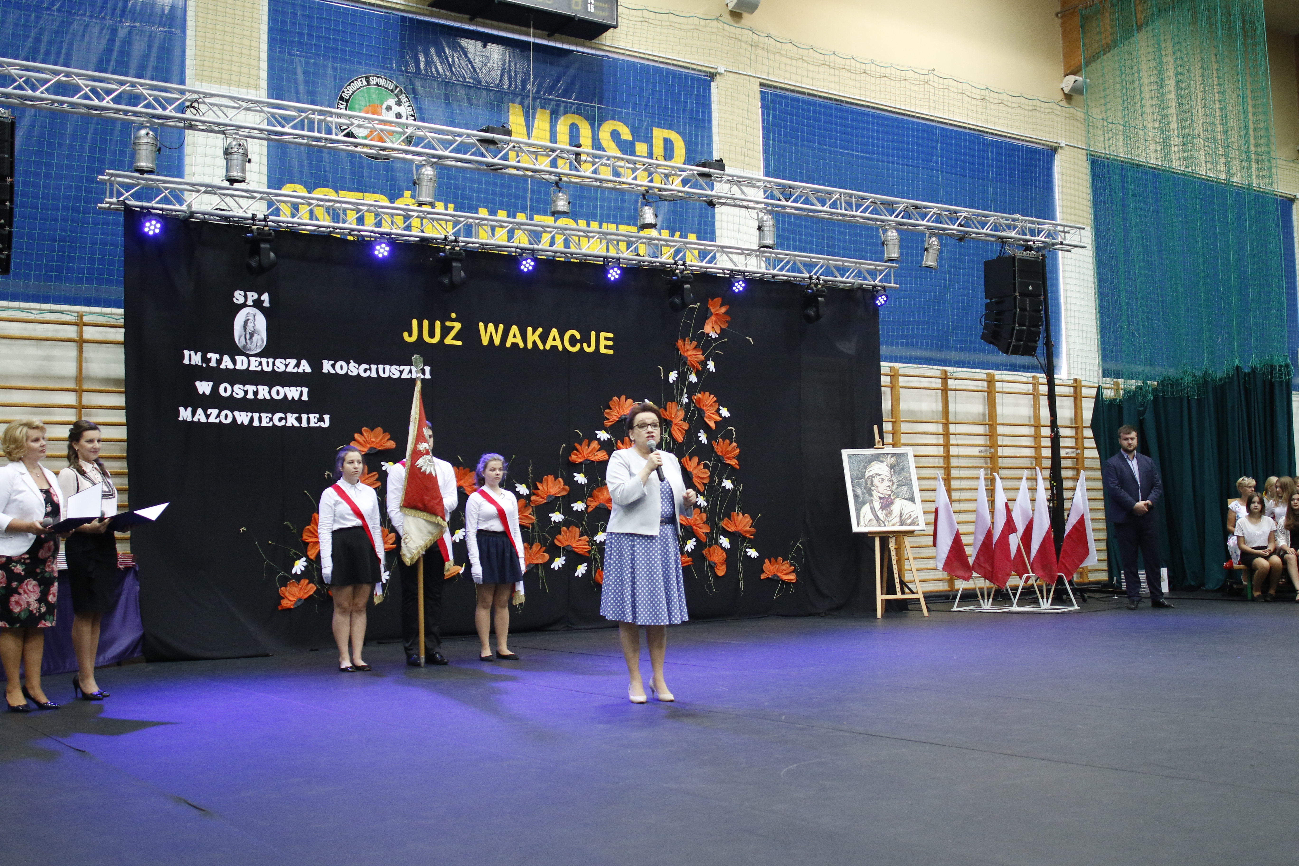 Minister Edukacji Narodowej uczestniczyła dziś, 22 czerwca br. w ogólnopolskim zakończeniu roku szkolnego 2017/2018, które odbyło się w Szkole Podstawowej nr 1 im. Tadeusza Kościuszki w Ostrowi Mazowieckiej. Podczas uroczystości wręczyła wyróżnienia dla laureatów konkursów przedmiotowych i najlepszych uczniów. – To dla mnie honor i zaszczyt, że mogę być w szkole, której historia sięga XV w. Mało jest takich szkół w Polsce, gdzie dekretami królewskimi podejmowano decyzje o budowie – powiedziała minister Anna Zalewska, dziękując społeczności szkolnej za zaproszenie na uroczystość. Podkreślając długą i piękną historię Szkoły w Ostrowi, przypomniała m.in. o wizycie prezydenta w XX-leciu międzywojennym. Minister edukacji przekazała gratulacje wszystkim dzieciom, które dziś zakończyły zajęcia dydaktyczno-wychowawcze, nie tylko tym wyróżnionym. – Dla tych, również, którym czasami nie chciało się wstać do szkoły. Dla tych płaczących przed sprawdzianem. Dla tych, którzy nie zawsze zgadzali się z koleżanką lub kolegą. Dla tych, dla których trzeba było wyjść z porażki przy wsparciu nauczycieli i rodziców – powiedziała minister Anna Zalewska. Minister edukacji podziękowała całej kadrze pedagogicznej i złożyła wszystkim nauczycielom wyrazy uznania za ich całoroczną pracę. Podkreśliła, że to oni budują klimat szkoły i należy mówić o nich z ogromnym szacunkiem, a także pamiętać podczas wakacji. – Rodzice chcą z wami kształtować wychowanie dzieci, za które przecież sami są odpowiedzialni, a wy ich w tym wspieracie – zaznaczyła minister Anna Zalewska, wskazując na dobrą współpracę nauczycieli z rodzicami, której celem jest dobro dzieci. Całej społeczności szkolnej minister przekazała życzenia bezpiecznych wakacji. Życzyła wielu przygód przeżywanych wspólnie z rodzicami, dziadkami i przyjaciółmi. Zachęciła także dzieci do czytania książek podczas letniego odpoczynku i ogłosiła związany z tym konkurs dla uczniów Szkoły Podstawowej nr 1 w Ostrowi Mazowieckiej. W uroczystości zakończenia roku szkolnego wzięli udział także: Mazowiecka Kurator Oświaty Aurelia Michałowska, Wicewojewoda Mazowiecki Sylwester Dąbrowski, parlamentarzyści i samorządowcy z regionu. Szkoła Podstawowa nr 1 im. Tadeusza Kościuszki jest najstarszą placówką oświatową w Ostrowi Mazowieckiej i całym powiecie ostrowskim. Uczy się w niej ponad 650 uczniów.