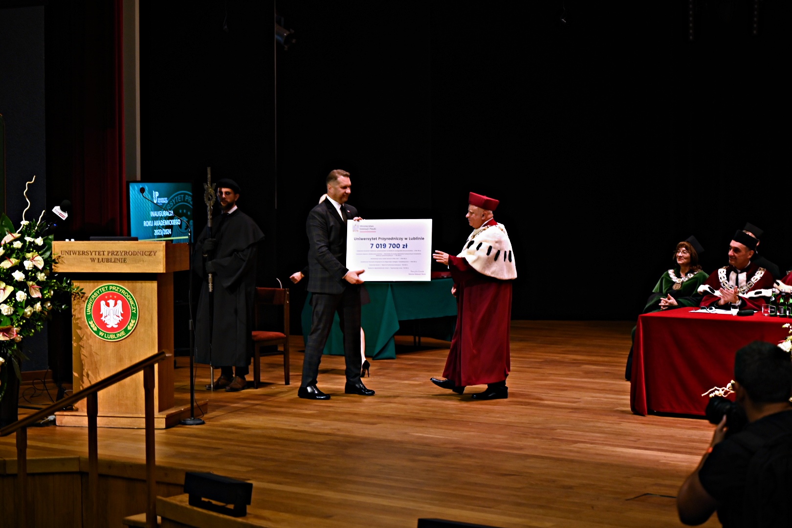 Podczas uroczystości Minister Edukacji i Nauki przekazał na ręce Rektora Uniwersytetu Przyrodniczego prof. Krzysztofa Kowalczyka symboliczny czek na kwotę ponad 7 mln zł: