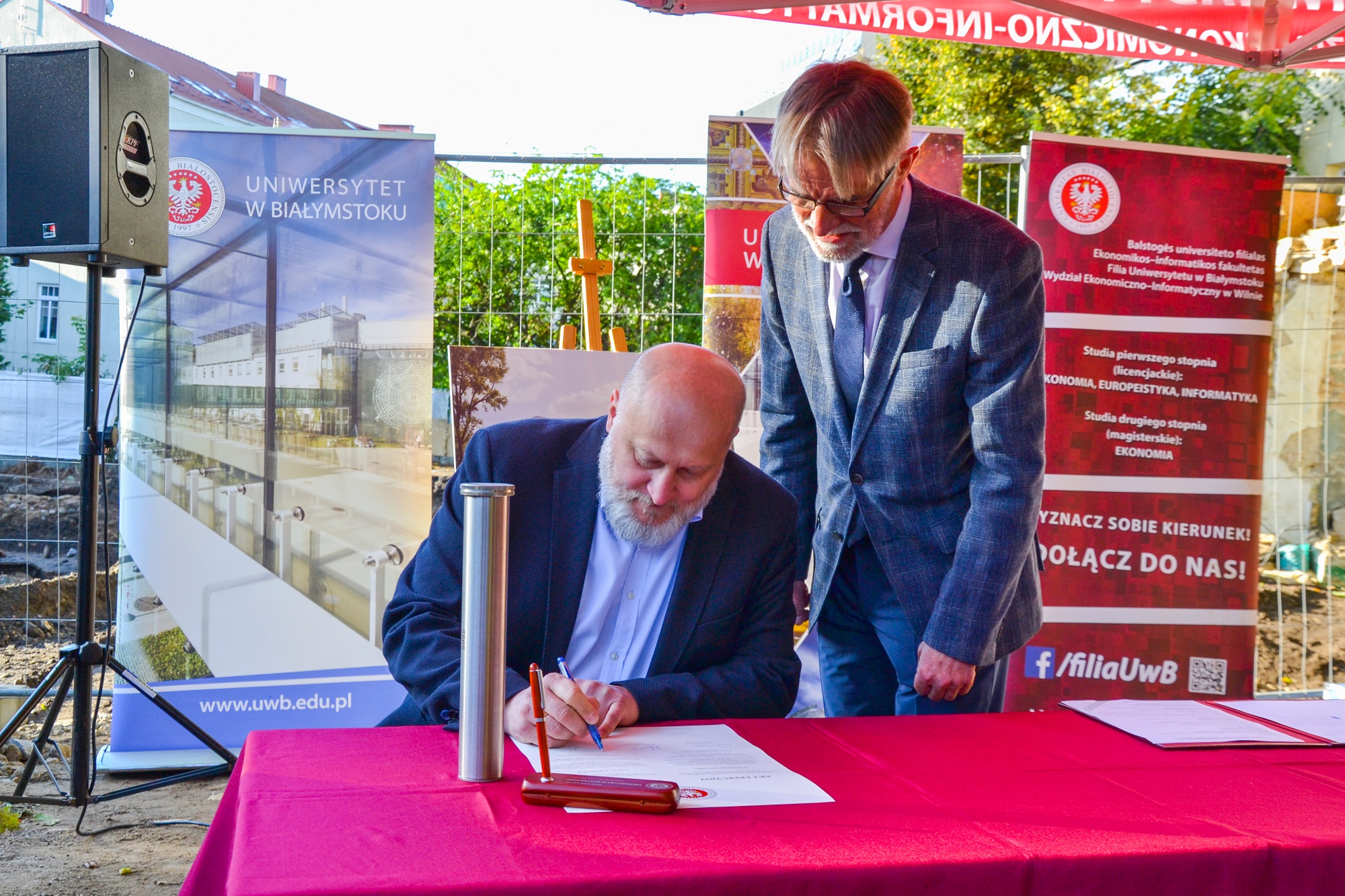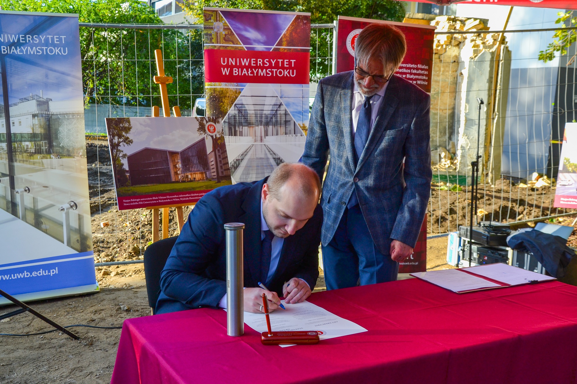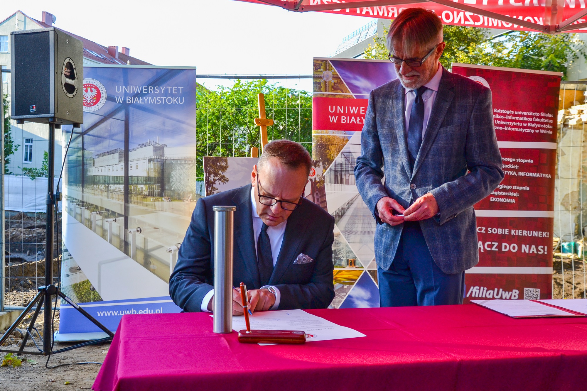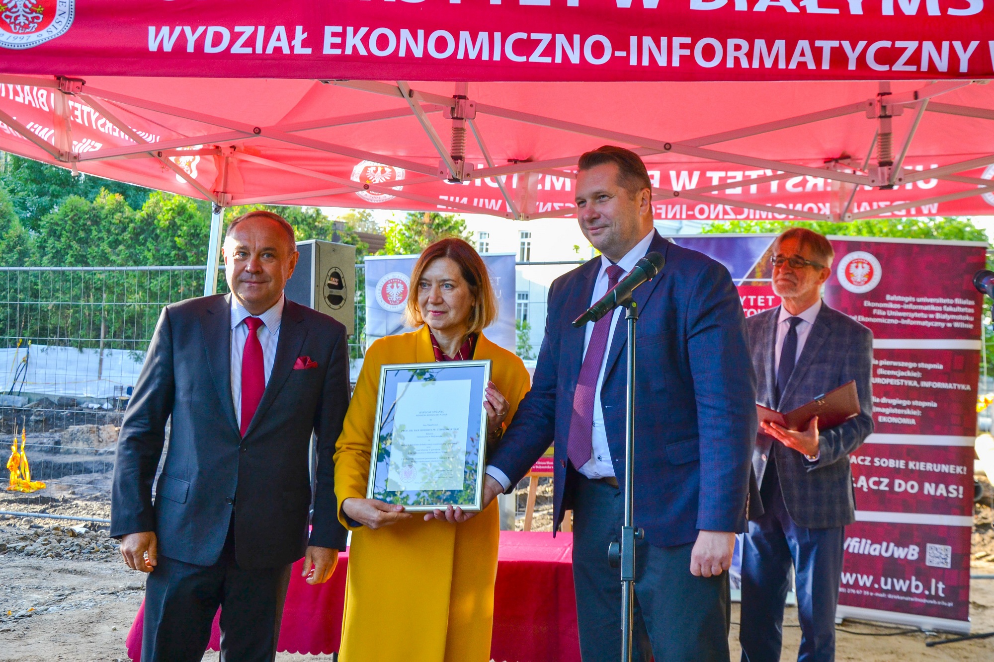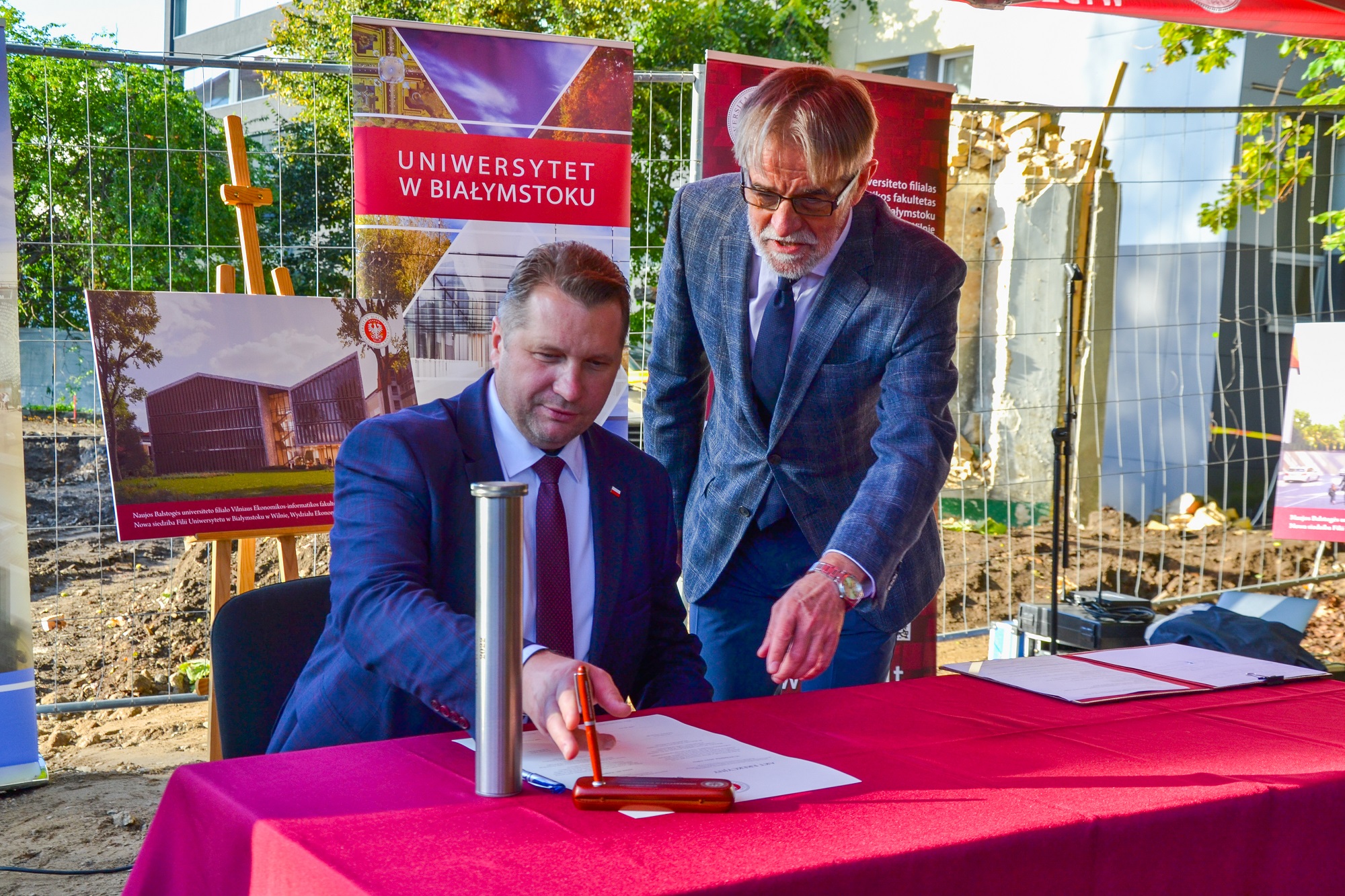 Minister Edukacji i Nauki Przemysław Czarnek wziął udział w uroczystości podpisania i wmurowania aktu erekcyjnego pod budowę siedziby wileńskiej Filii Uniwersytetu w Białymstoku, na której budowę MEiN przeznaczyło 30 mln zł.