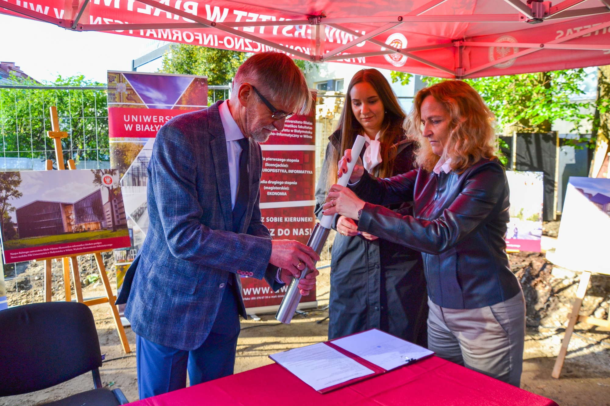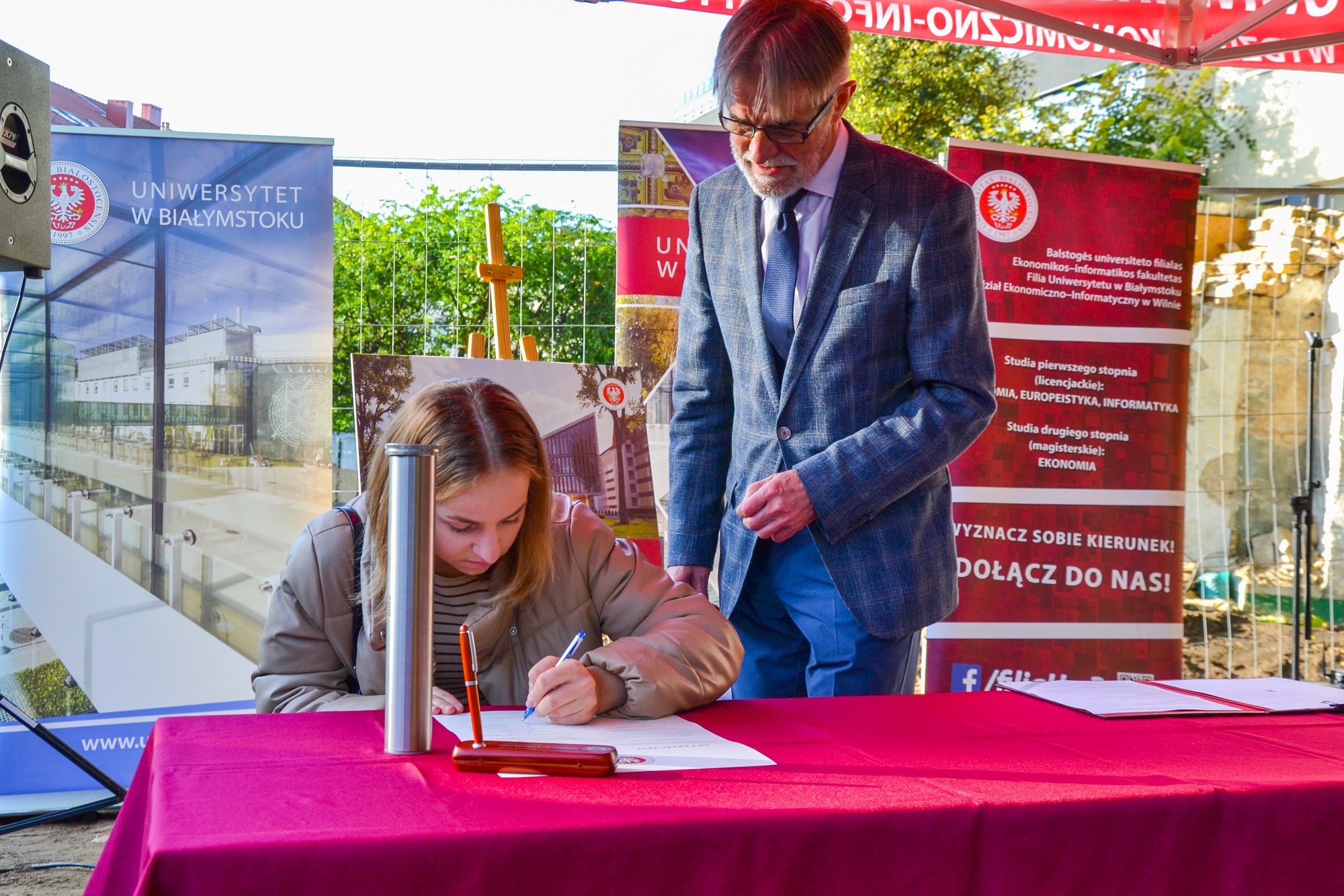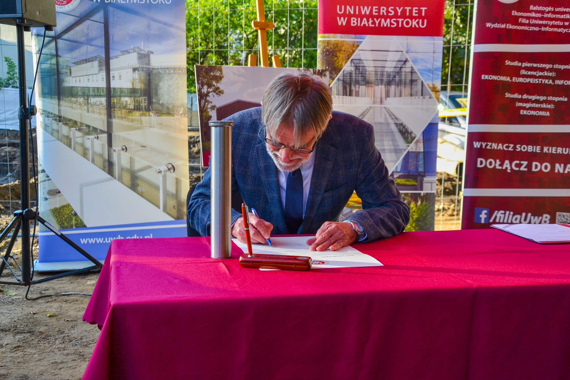 W uroczystym podpisaniu aktu erekcyjnego udział wzięli m.in. Minister Edukacji i Nauki Przemysław Czarnek, Gintautas Jakštas, wiceminister w Ministerstwie Edukacji, Nauki i Sportu Litwy i prof. dr hab. Robert W. Ciborowski, rektor Uniwersytetu w Białymstoku.