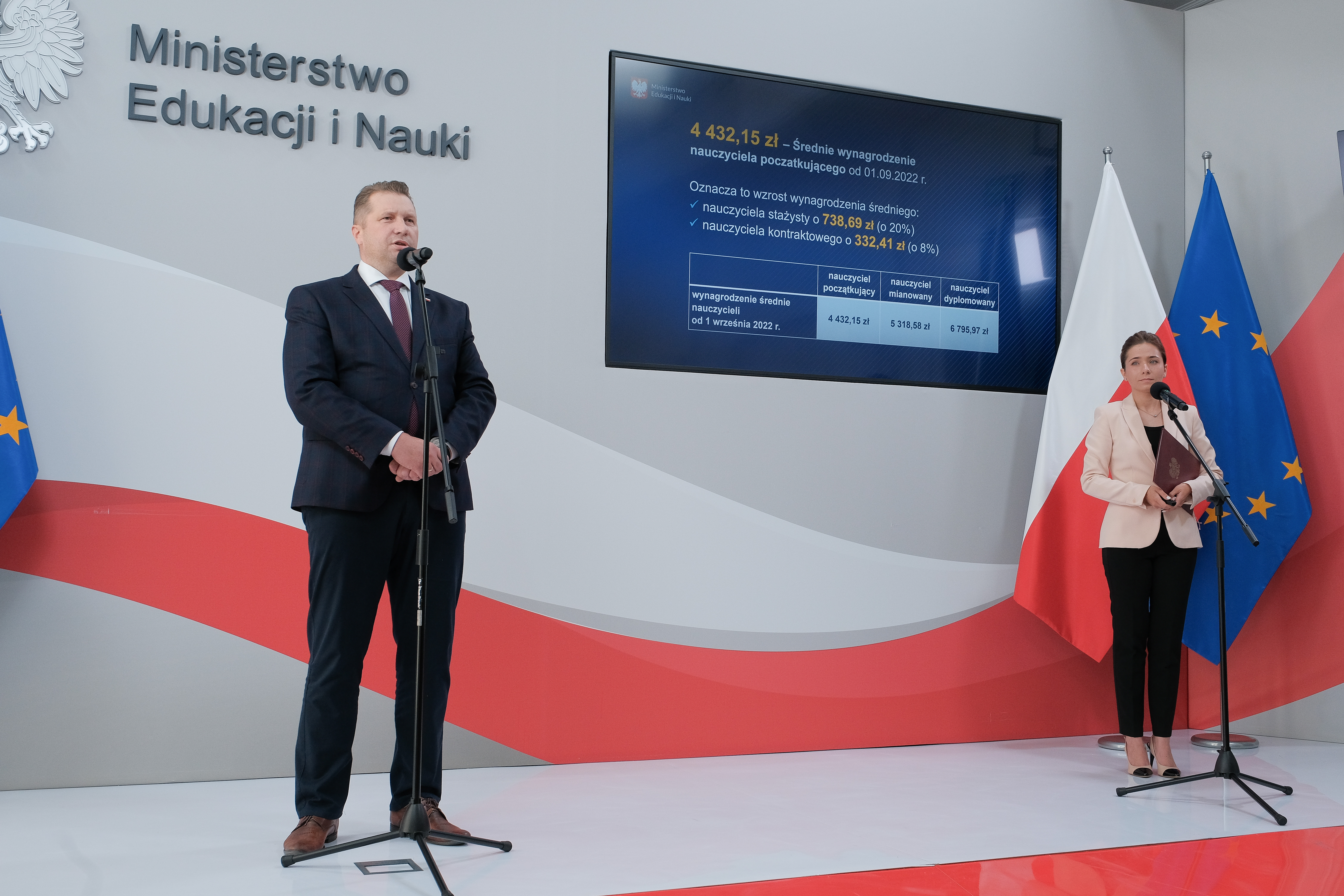 Wynagrodzenia nauczycieli i wolne etaty w szkołach – konferencja prasowa szefa MEiN