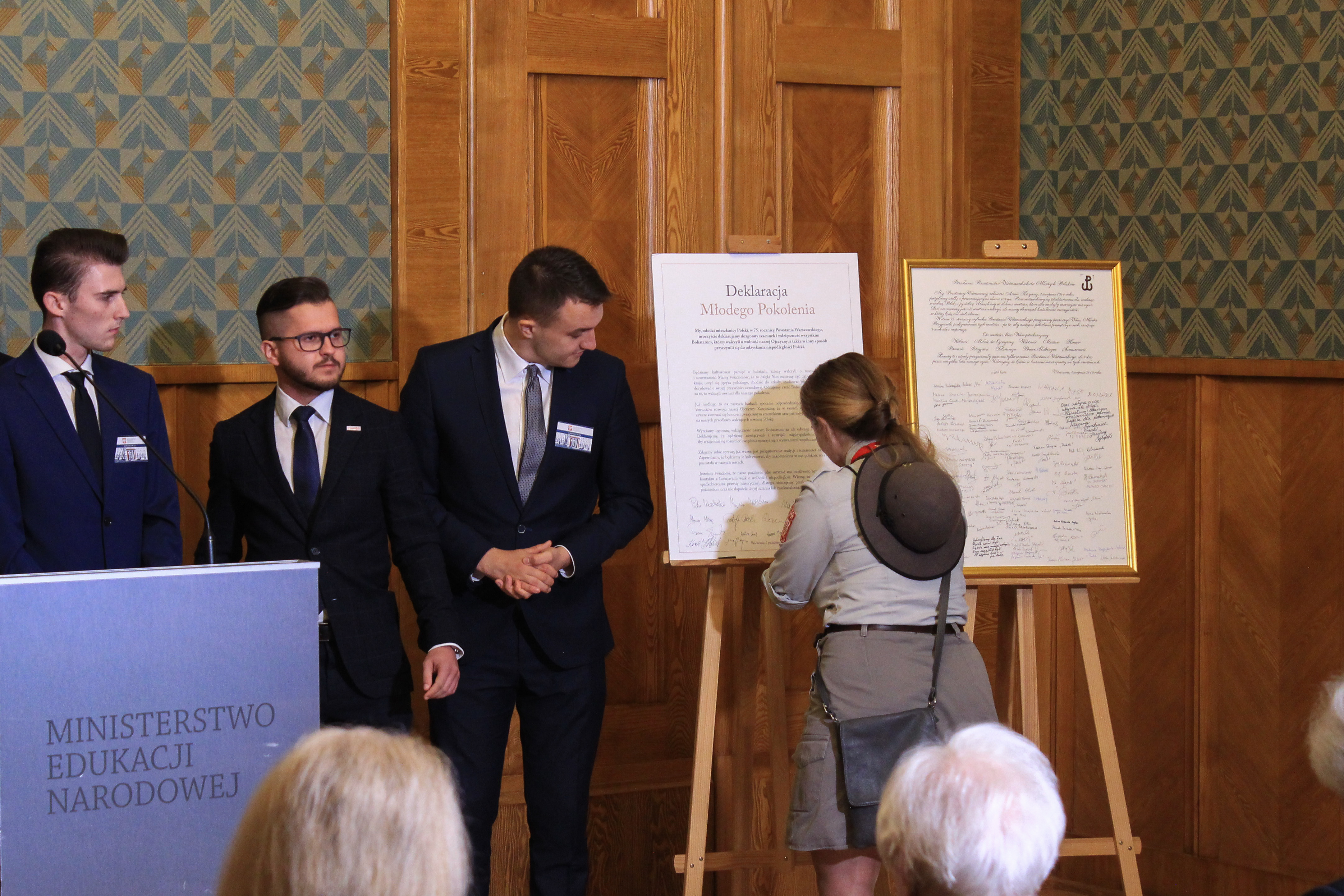 We wtorek, 1 października odbyła się wspólna konferencja Ministra Edukacji Narodowej Dariusza Piontkowskiego oraz dyrektora Muzeum Powstania Warszawskiego Jana Ołdakowskiego. Podczas spotkania przedstawiciele 15 organizacji młodzieżowych podpisali Deklarację Młodego Pokolenia, która jest odpowiedzią na Przesłanie Powstańców Warszawskich do młodych Polaków. Minister edukacji i dyrektor MPW zaapelowali o włączenie się szkół w promowanie tego apelu.