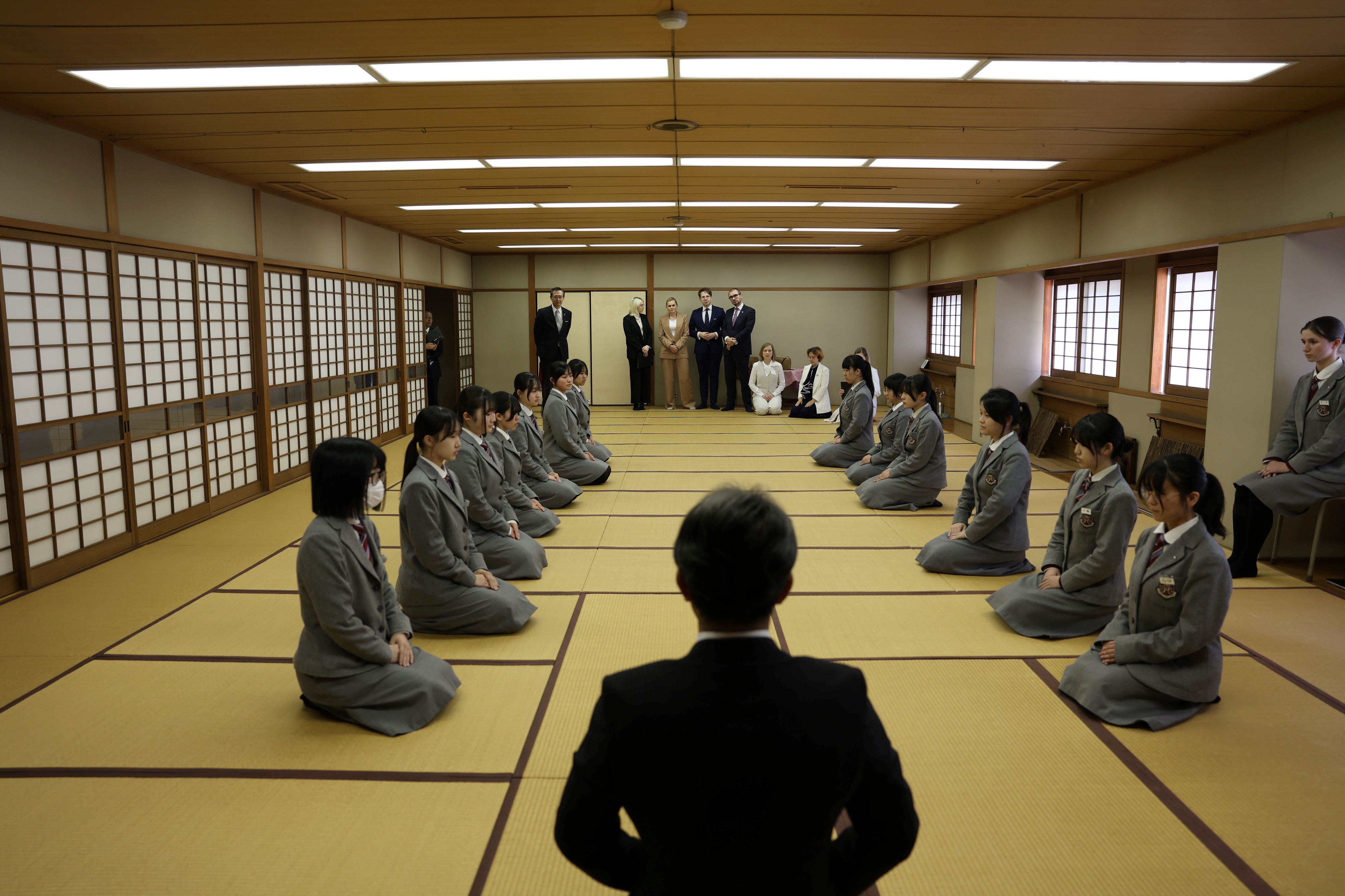 Minister miała okazję zwiedzić szkołę i uczestniczyć w lekcji „Kyoyou” – przedmiotu poświęconego japońskiej etyce, kulturze oraz tradycyjnym postawom i gestom.
