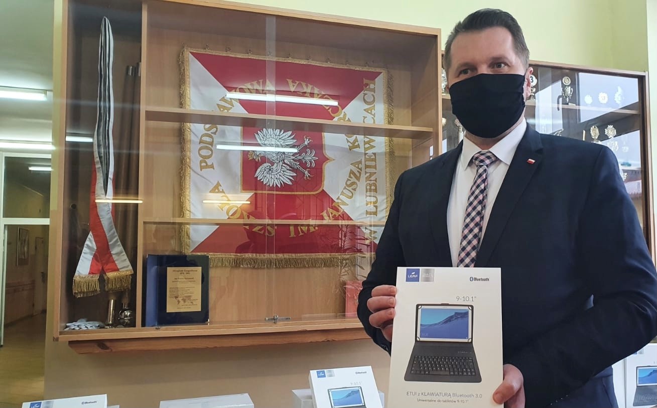 W czwartek, 3 grudnia br. minister Przemysław Czarnek odwiedził dwie szkoły w województwie lubuskim. Podczas spotkań z dyrektorami przekazał placówkom Szkolne Pakiety Multimedialne oraz tablice interaktywne. Pakiety to dodatkowe wsparcie dla nauczycieli i uczniów w nauce zdalnej. Każdy z takich zestawów zawiera 25 tabletów. Łączenie do 2 400 szkół w Polsce trafi 60 tys. tabletów.
