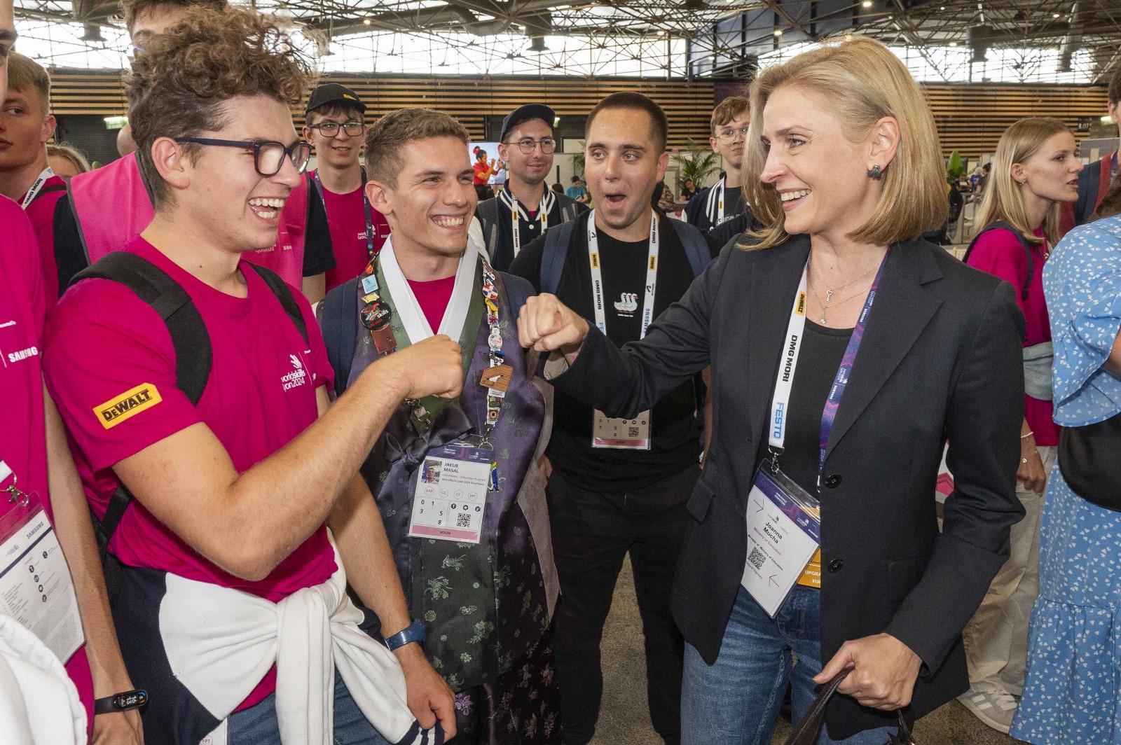 Joanna Mucha, sekretarz stanu gościła na WorldSkills 2024 w Lyonie, gdzie drużyny z całego świata, w tym z Polski rywalizują w konkursie w dyscyplinach zawodowych.