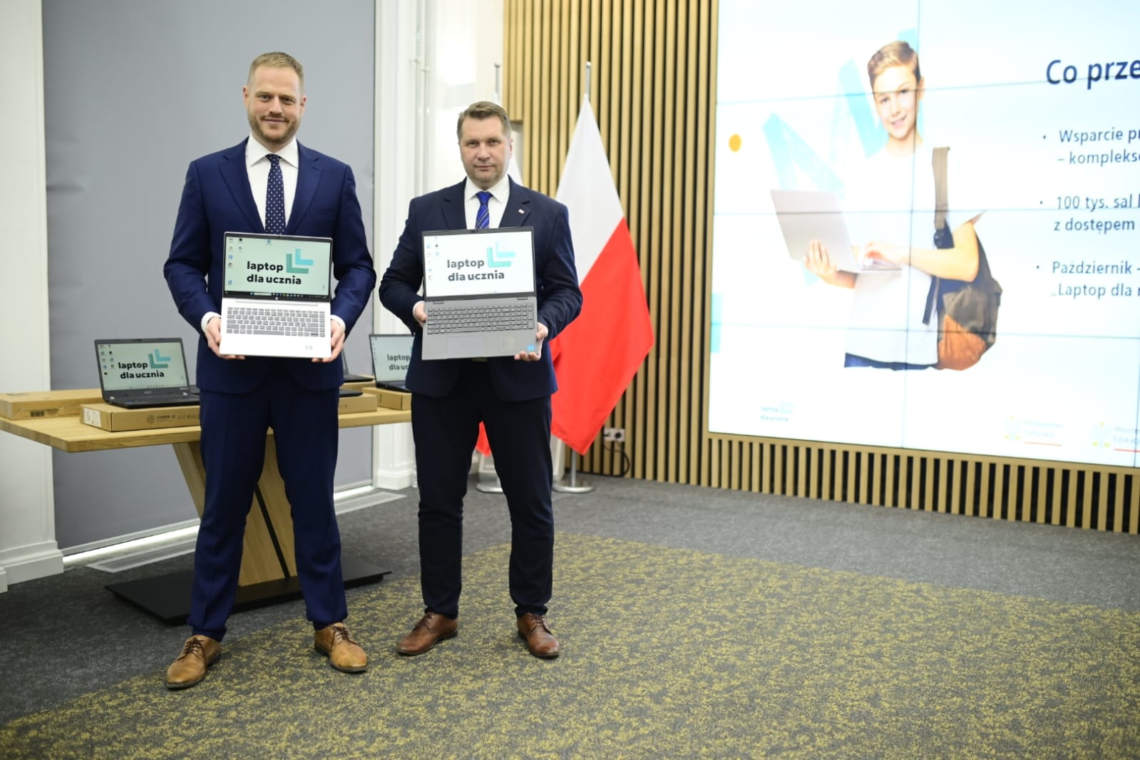 – Rozpoczynamy nowy rozdział w edukacji polskich uczniów, którego założeniem jest wyrównywanie szans i wzmacnianie kompetencji cyfrowych. Wszystko idzie zgodnie z harmonogramem: rozstrzygnięto przetargi w większości z 73 regionów, wyłoniono konkretne modele laptopów, które trafią do rąk uczniów – mówił minister Janusz Cieszyński, przedstawiając działania związane z przekazywaniem laptopów dla uczniów.