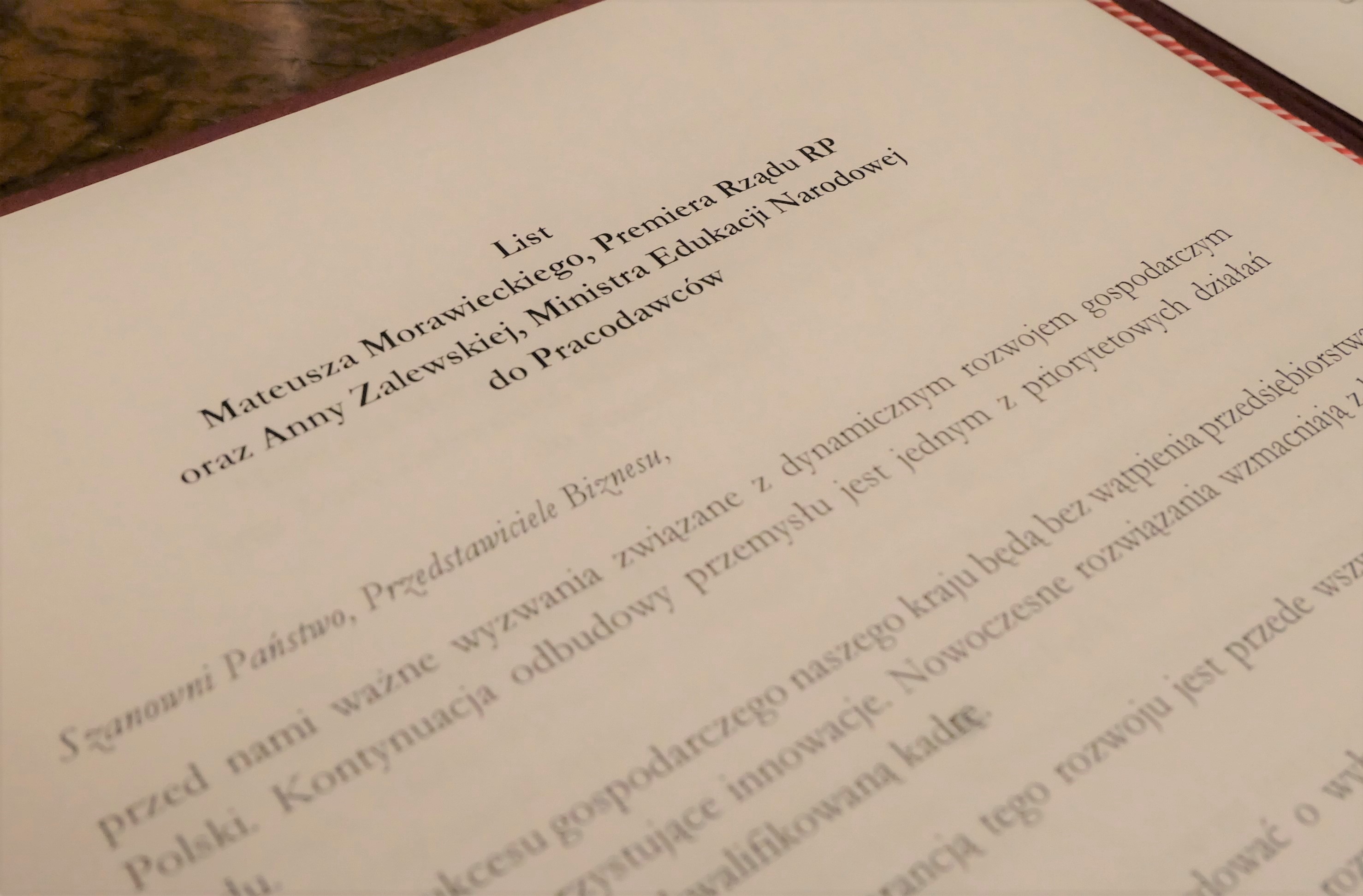 Wspólny list Premiera RP i Minister Edukacji Narodowej do pracodawców