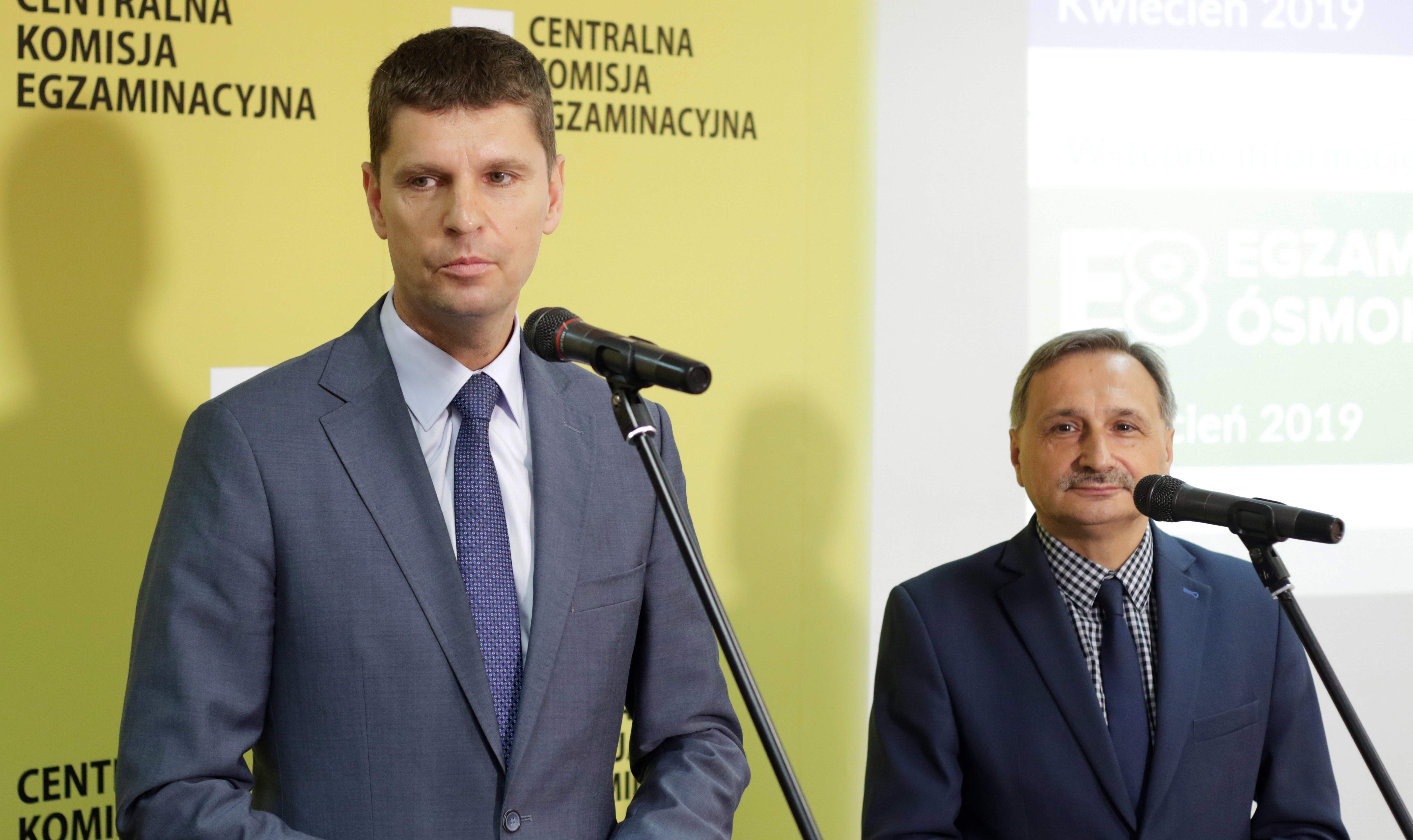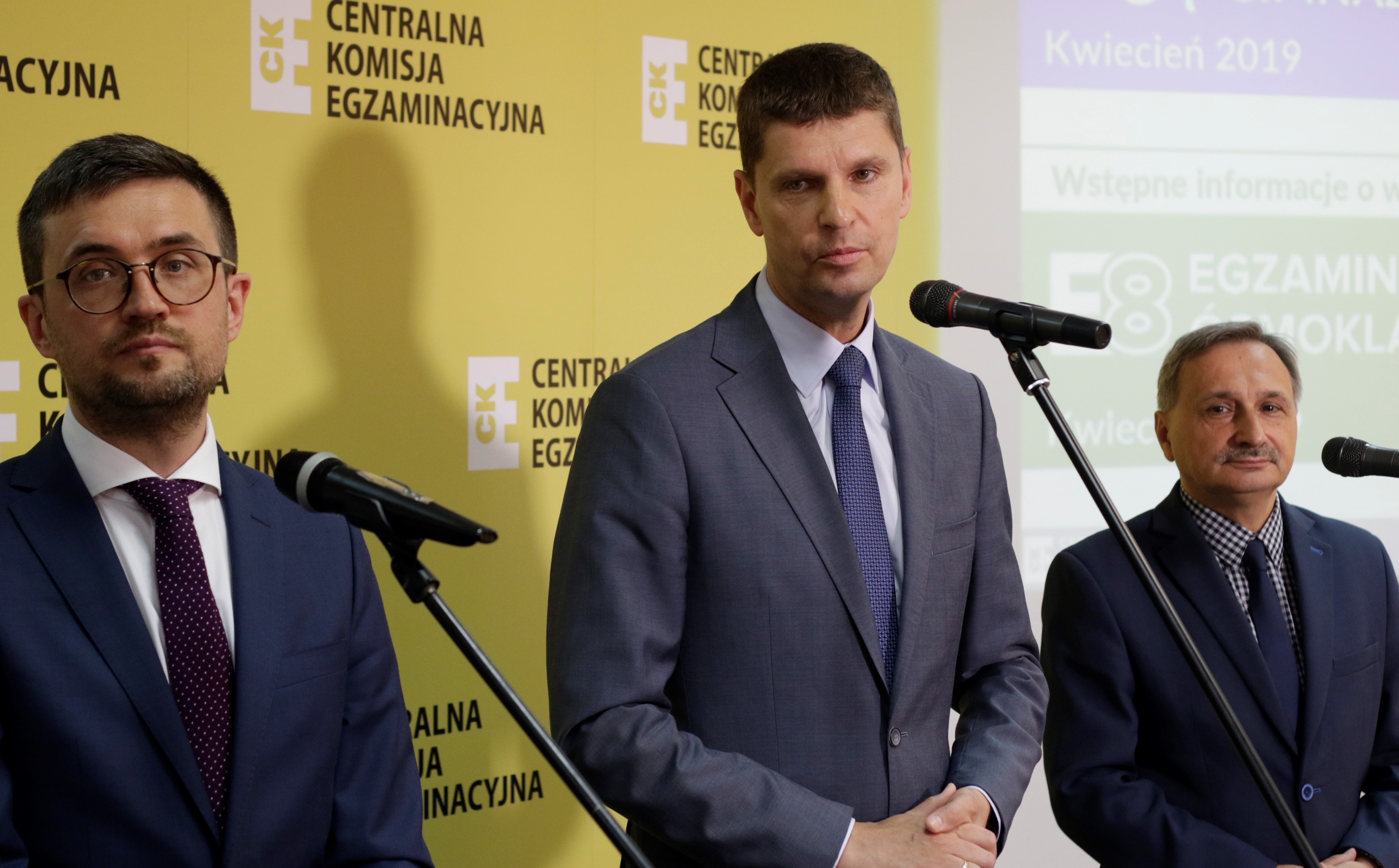 Centralna Komisja Egzaminacyjna przedstawiła dziś wstępne wyniki egzaminu gimnazjalnego i egzaminu ósmoklasisty, które przeprowadzone były w kwietniu. W konferencji prasowej w siedzibie CKE udział wziął Dariusz Piontkowski Minister Edukacji Narodowej, wiceminister edukacji Maciej Kopeć oraz Marcin Smolik dyrektor Centralnej Komisji Egzaminacyjnej.