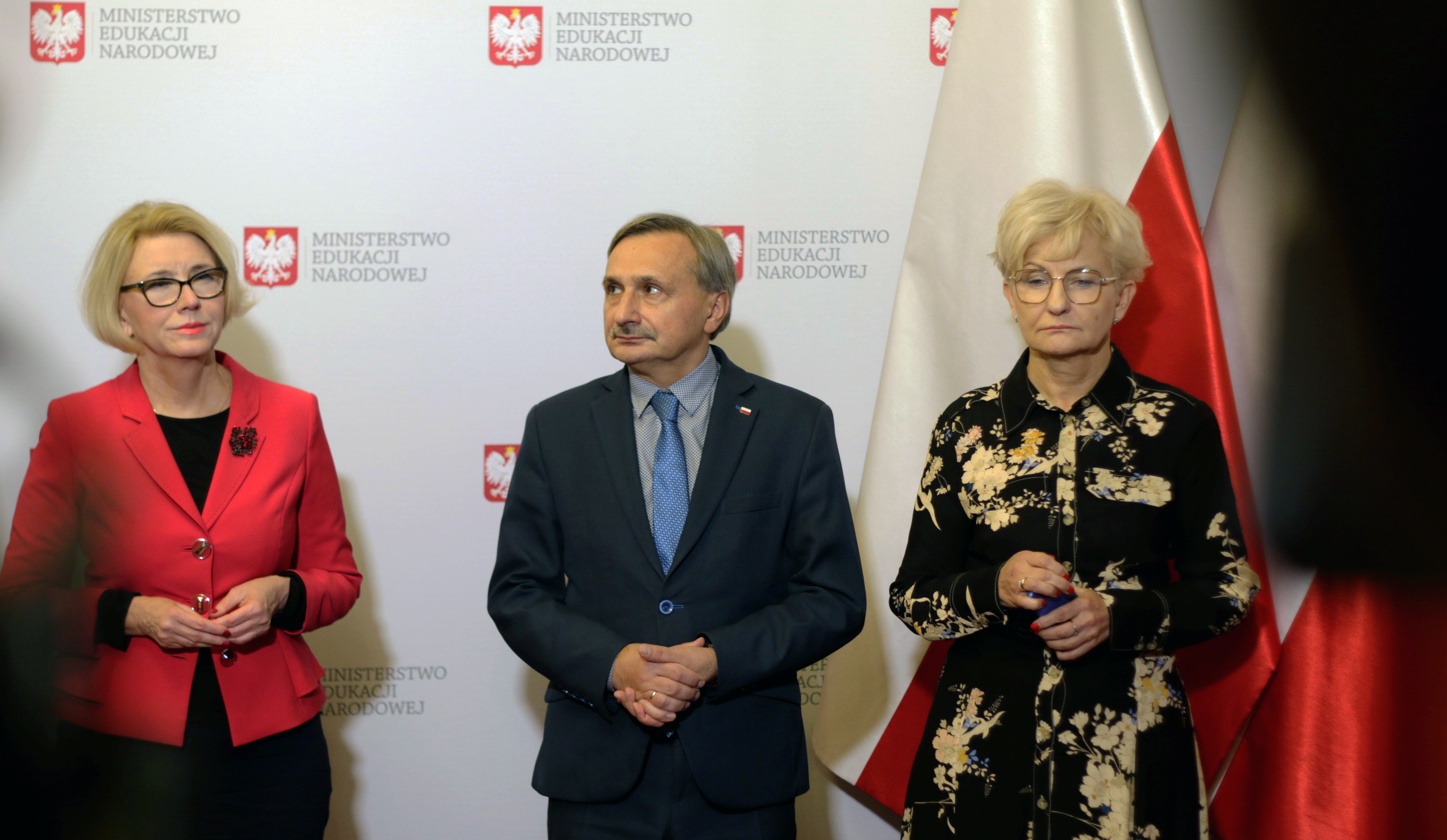 Podczas koferencji prasowej, która odbyła się 7 listopada br. obecni byli wiceministrowie edukacji: Marzena Machałek, Iwona Michałek oraz Maciej Kopeć.