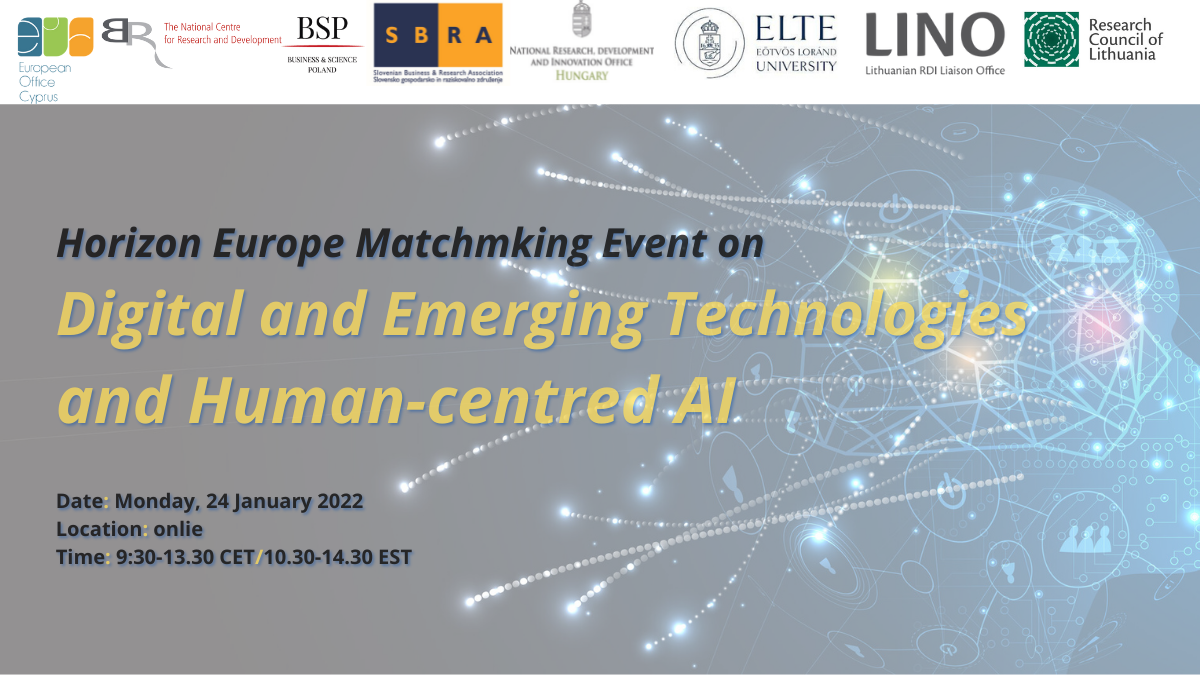 Serdecznie zapraszamy na spotkanie informacyjne i matchmakingowe dotyczące Digital and Emerging Technologies and Human-centred AI w programie Horyzont Europa, które odbędzie się w poniedziałek 24 stycznia 2022 r. o godzinie 09:30 w formule online.