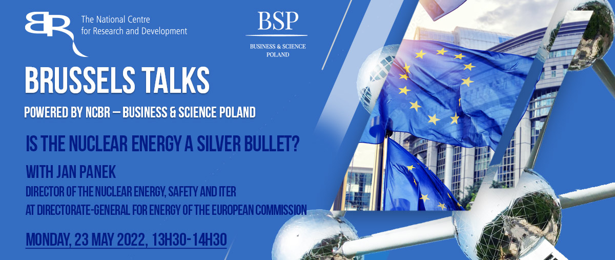 W ramach organizowanej przez Biuro NCBR w Brukseli | BSP serii spotkań „Brussels Talks”, serdecznie zapraszamy na kolejne jej wydanie – w maju gościem będzie Jan Panek z DG ENER Komisji Europejskiej. Tematem będzie program EURATOM i zagadnienie energii jądrowej, w szczególności pod kątem B+R+I. Webinar odbędzie się 23 maja 2022 r., w godz. 13.30-14.30 na platformie ClickMeeting.