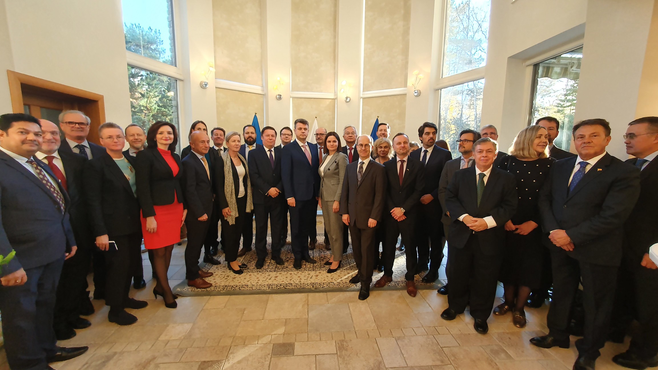 Eesti välisminister Urmas Reinsalu ja Valgevene opositsiooniliider Svjatlana Tsihhanovskaja olid aukülalisteks vastuvõtul kohaliku diplomaatilise korpuse esindajatega, mille korraldas korpuse dekaan, suursaadik Grzegorz Kozłowski oma residentsis. Kohtumisel arutati muu hulgas Ukraina ja Valgevene opositsiooni toetamise küsimusi.