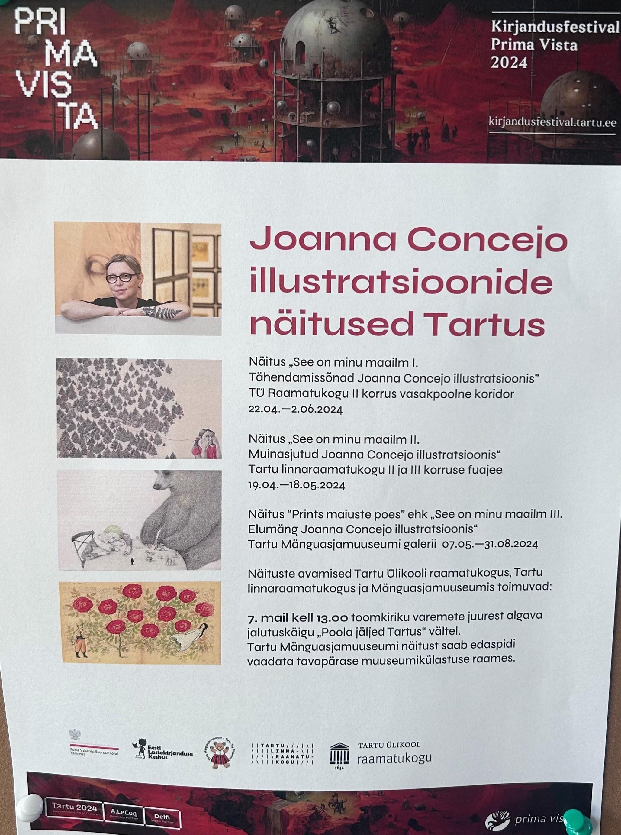 Joanna Concejo näitused „Illustratsioon? See on minu maaim!” Kabli Seltsimajas ning „Prints maiuste kohvikus” Tartu Mänguasjamuuseumis on avatud augusti lõpuni Väljapanekut korraldab Poola Vabariigi Suursaatkond koostõõs Eesti Lastekirjanduse Keskusega
