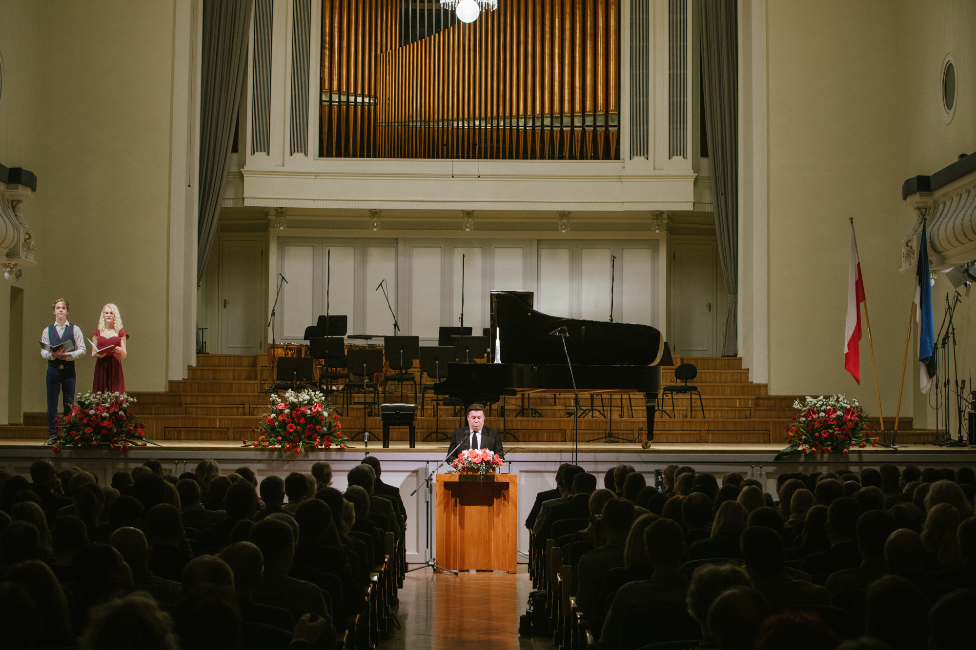 Pidulikul tseremoonial esinesid enne kontserti EV kultuuriminister Tõnis Lukas ja PV Kultuuri- ja rahvuspärandi ministeeriumi aseriigisekretär Paweł Lewandowski, kes luges ette ka asepeaministri, kultuuri- ja rahvuspärandi ministri Piotr Gliński kirja. PV suursaadik Grzegorz Kozłowski andis korralduskomitee pikaaegsele esinaisele Galina Moldonile üle PV presidendi poolt omistatud riikliku autasu – Teenete ordeni Rüütliristi.
