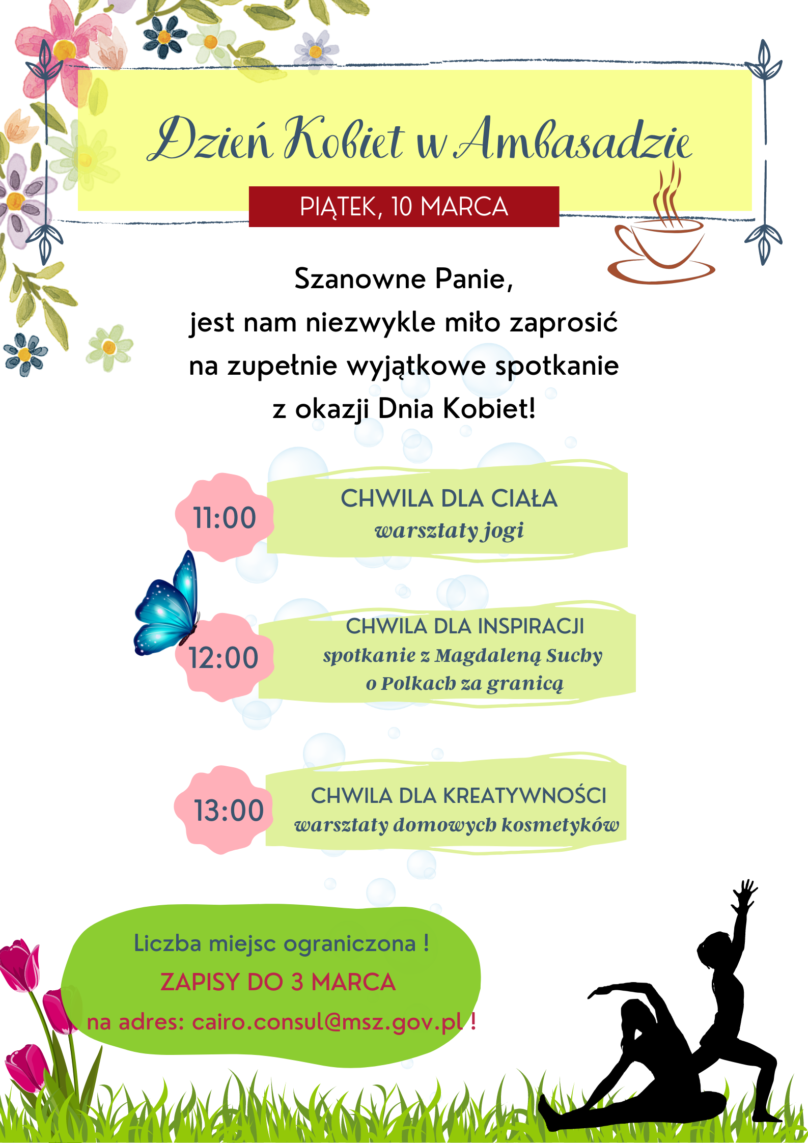 Serdecznie zapraszamy Polki mieszkające w Egipcie do udziału w niezwykłym spotkaniu z okazji Dnia Kobiet, które odbędzie się 10 marca w ogrodach Ambasady.