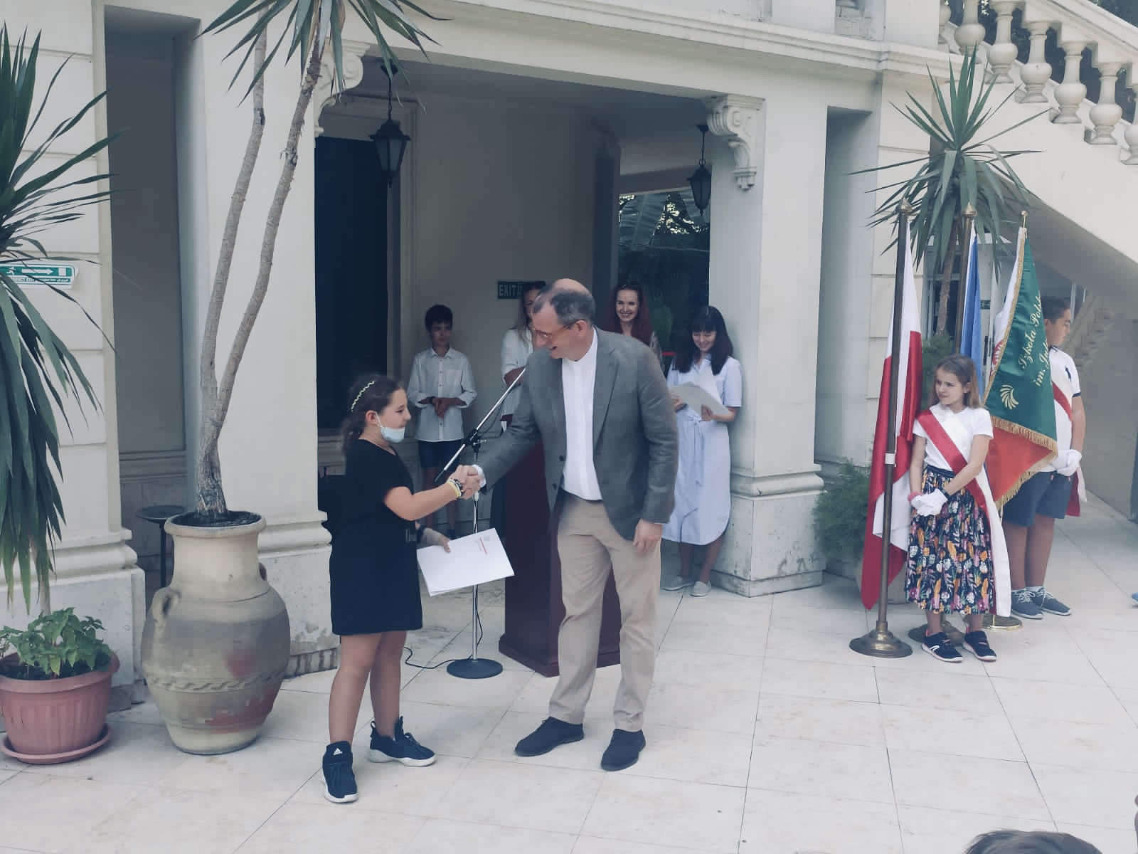 Podczas wydarzenia konsul Anna Chabros odczytała list Małżonki Prezydenta RP Pani Agaty Kornhauser-Dudy w związku z udziałem uczniów Szkoły w Konkursie Recytatorskim „Słowem – Polska”. Dyplomy przygotowane z tej okazji dla Omara, Marii, Salmy i Omara wręczył Ambasador Polski w Egipcie Pan Michał Łabenda.