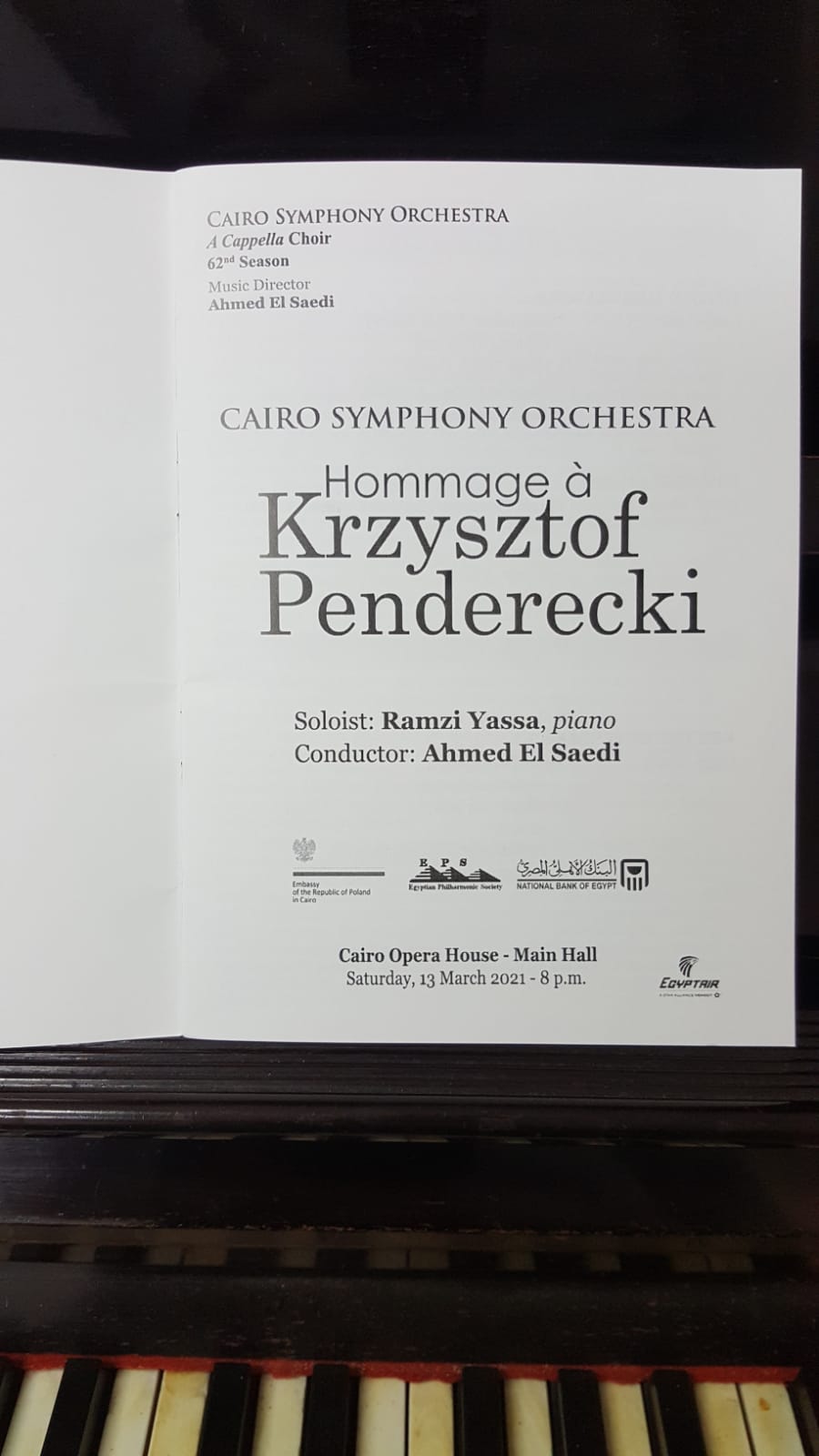 Kairska Orkiestra Symfoniczna pod patronatem Ambasady RP w Kairze, 13 marca 2021 r. zagrała koncert pt. „Hommage à Penderecki”, upamiętniający dorobek muzyczny wybitnego polskiego kompozytora Krzysztofa Pendereckiego, w pierwszą rocznicę jego śmierci.