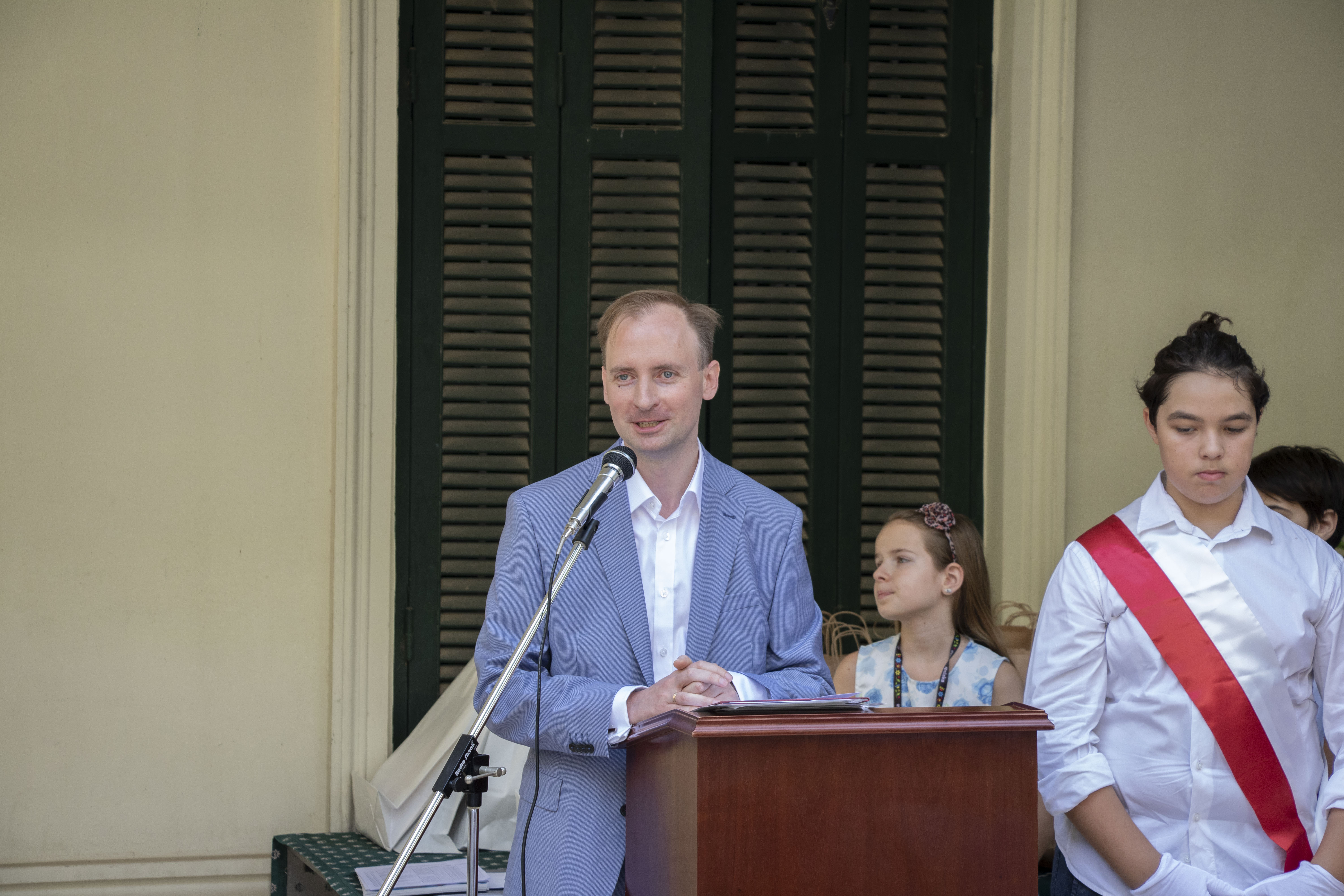 Uroczystość, która odbyła się w dn. 11 czerwca w ogrodzie Ambasady RP w Kairze rozpoczęła Pani Monika Mucha El-Serougi, Kierownik Szkoły, witając wszystkich bardzo serdecznie, gratulując dzieciom wysiłku i efektów pracy oraz życząc satysfakcji ze zdobytej wiedzy.