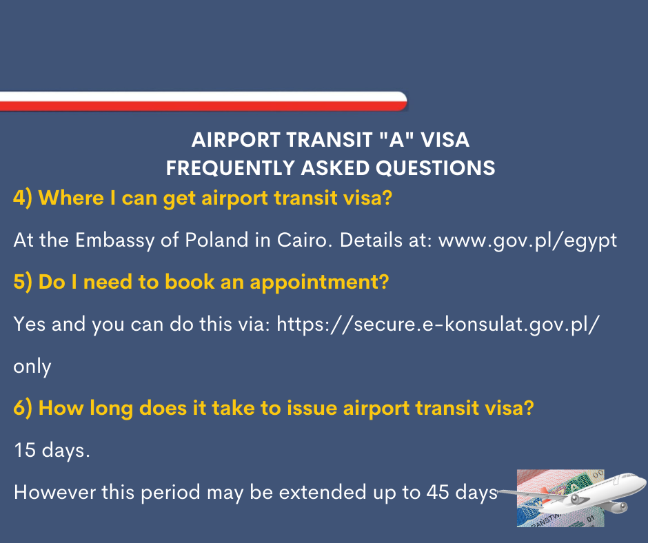 Detailed information on airport transit "A" visa you may find here: https://www.gov.pl/web/egypt/a-type-airport-transit-visa