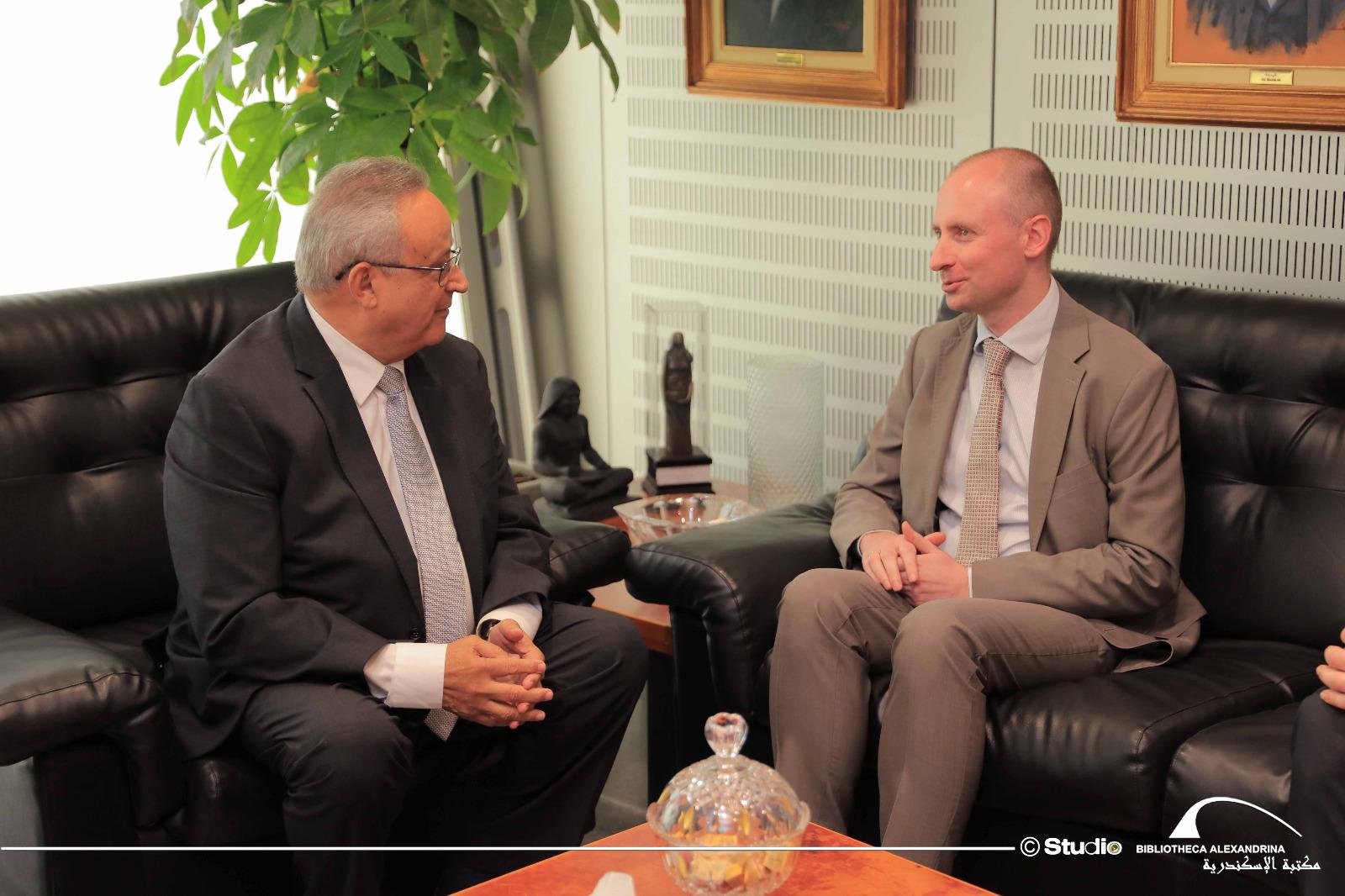 At the Bibliotheca Alexandrina, we were received by its Director, Ahmed Zayed. The library is the largest institution of its kind in the region, with a much broader range of activities than a traditional library, including cultural, exhibition, and scientific activities, etc. The meeting took place in a very good atmosphere, and the Bibliotheca expressed readiness to cooperate on exhibition or cultural initiatives.
