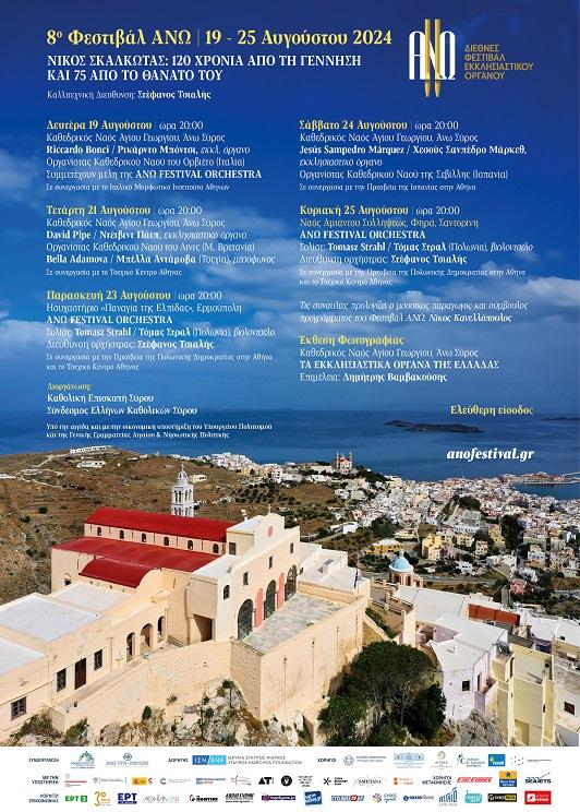 Το φετινό φεστιβάλ είναι αφιερωμένο στον μεγάλο Έλληνα συνθέτη – από τις Κυκλάδες – Νίκο Σκαλκώτα και για πρώτη φορά θα παρουσιάσει στο κοινό την ANΟ FESTIVAL ORCHESTRA (AFO), που αποτελείται από νέους μουσικούς από την Ελλάδα, την Πολωνία και την Τσεχία μαζί με έμπειρους μουσικούς της Κρατικής Ορχήστρας Αθηνών υπό τη διεύθυνση του καλλιτεχνικού διευθυντή του Φεστιβάλ και εξαίρετου διεθνούς μαέστρου Στέφανου Τσιαλή.