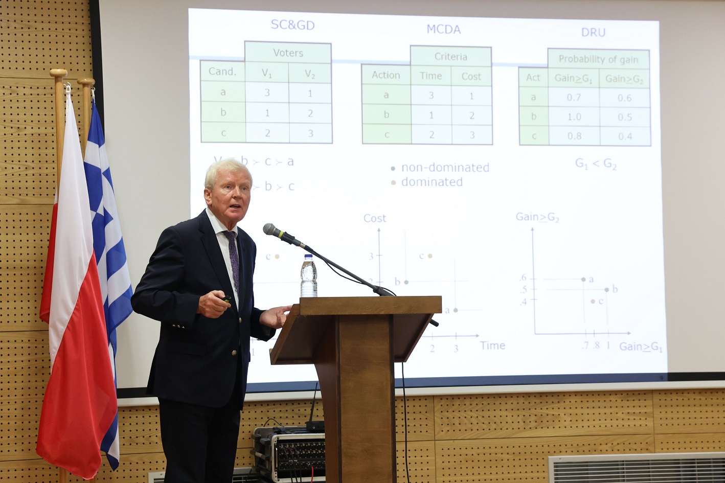 Εκ μέρους του Ελληνικού Μεσογειακού Πανεπιστημίου, προσφώνησαν τον Καθηγητή Roman Slowinski και μίλησαν για το έργο του, ο Πρύτανης, Καθηγητής Νικόλαος Κατσαράκης, ο Πρόεδρος του Τμήματος Λογιστικής και Χρηματοοικονομικής, Αναπλ. Καθηγητής Ιωάννης Χατζηαντωνίου και ο Συνεργάτης του Εργαστηρίου LAFIM, Επίτιμος Καθηγητής του ΕΛΜΕΠΑ και Καθηγητής στο Πολυτεχνείο Κρήτης, Καθηγητής Κωνσταντίνος Ζοπουνίδης.