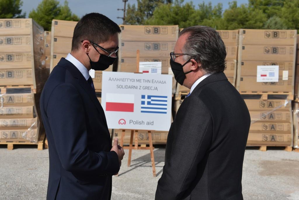 «Η πολωνική κυβέρνηση και προσωπικά ο πρωθυπουργός Mateusz Morawiecki, απαντώντας στο αίτημα της ελληνικής κυβέρνησης, πήρε τον Ιούλιο μια γρήγορη απόφαση για την αγορά 156 κινητών μονάδων στέγασης για τις δομές φιλοξενίας στην Ελλάδα. Είναι η συνεισφορά της Πολωνίας και η συμμετοχή της στις δράσεις και των άλλων χωρών της Ευρωπαϊκής Ένωσης. Για εμάς, είναι πάνω από όλα μια χειρονομία αλληλεγγύης προς τον ελληνικό λαό. Κατανοούμε απόλυτα την κατάσταση, στην οποία βρίσκεται η Ελλάδα στην μεταναστευτική κρίση. Σε αυτό το σημείο, θα ήθελα να ευχαριστήσω τις ελληνικές αρχές, και προσωπικά τον Υπουργό κ. Κουμουτσάκο και τα στελέχη του Υπουργείου Μετανάστευσης και Ασύλου και των υπηρεσιών του, καθώς και τις Ελληνικές Ένοπλες Δυνάμεις για τη συνεργασία και την καλοσύνη τους σε κάθε στάδιο υλοποίησης αυτής της δράσης. Χαίρομαι που από κοινού καταφέραμε να την υλοποιήσουμε και ελπίζω, ότι δεν θα είναι η τελευταία».